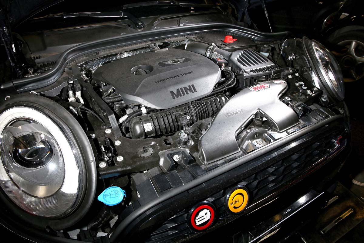 一開始聽到2.0升引擎想必大家第一個念頭,應該就是搭載N20這具能見度相當高的直四渦輪本體,其實不然,F56這具代號B48心臟可說是搭載了BMW Twin Power Turbo雙渦流渦輪機、缸內直噴、VALVETRONIC與Double VANOS科技,未來更是會直接取代現行的N20引擎,而在前輪驅動的天生設計關係,就算排氣量較過去多出了400c.c.,最大馬力則僅多出8hp,不過扭力的部分則是多出了6.1kgm,由此可見F56的設定就在加速。而國內Mini改裝老舖布魯商行表示B48這具缸內直噴渦輪引擎基本上玩法跟一般的新世代渦輪增壓引擎相同,首先就是將增壓值向上提升,並且穩定持續的達到理想壓力,搭配供油點火的校正及細部撰寫。