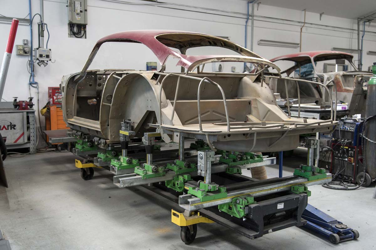 對於一家創立超過百年的汽車公司來說,擁有大量的經典車款可說是合情合理,但是Aston Martin為這些老車所保留的整備機具,看來就有些太超過了,這次Aston Martin帶我們參觀的,就是這些最驚人的部分。穿過了現代車輛的保養維修區域,經過了幾個曲折的走道之後,維修台上開始出現不屬於現代量產車的車款,在前頭的解說人員告訴我們現在進入的是Aston Martin的經典車維修中心,在這個維修中心裡,它們進行的不只是輕度的維修保養而已,整車翻新當然是主要任務,而更驚人的則是在整車翻新之餘,Aston Martin也可以協助車主進行一些現代化的升級工程,例如加上電動窗與自排變速箱,甚至是把車上的整套電源系統修改成現代化的設計,以提供更好的穩定性與效能。