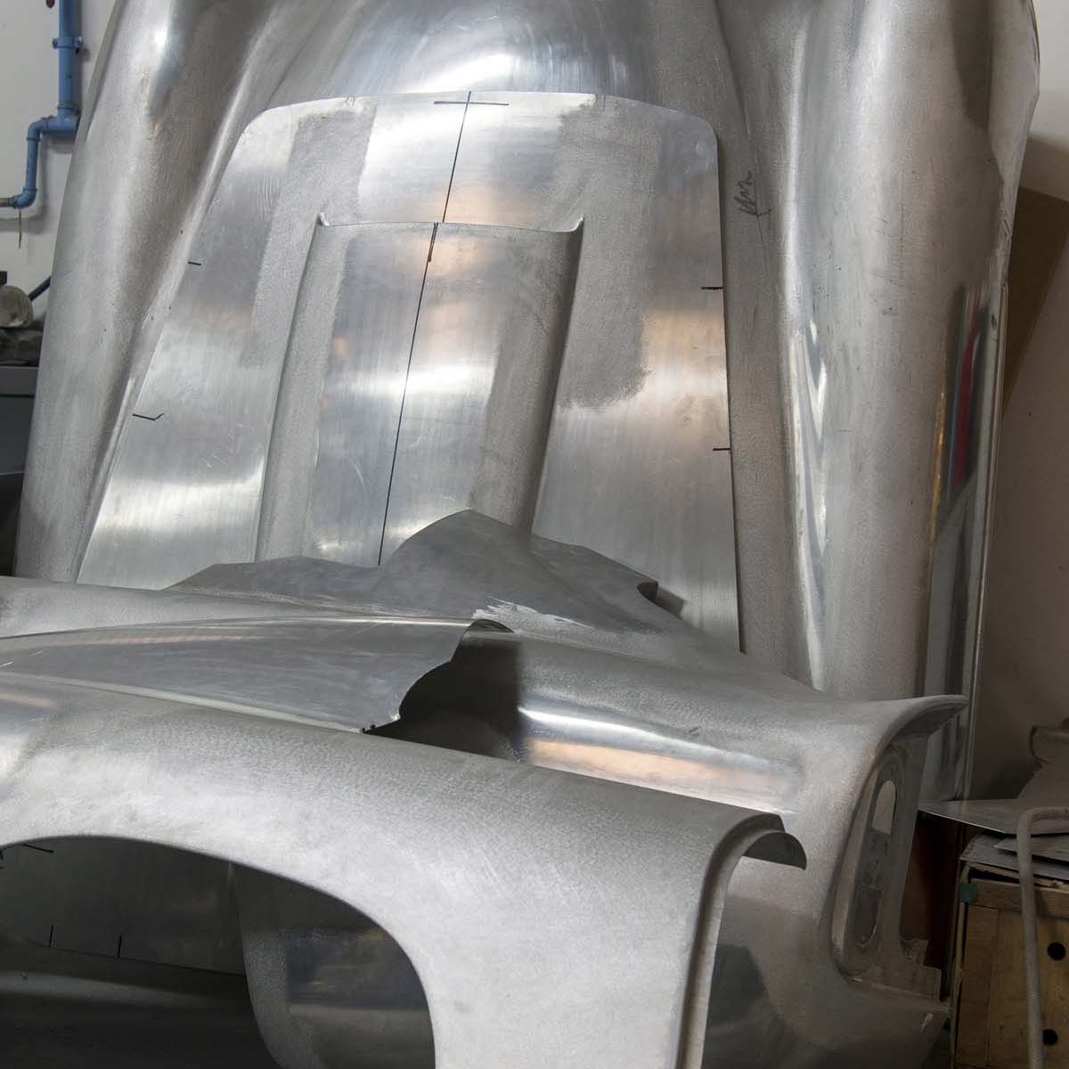 在Aston Martin的經典車中心,對於車輛的翻修有標準化的施工流程與方式,在完成四階段的施工之後,就完成了整套的翻修作業,車輛也能恢復到新車出廠時的狀態。我們在廠區裡看到大量的Aston Martin的經典車款,不論是早期的DB2或是上個世紀的DBS或是Vantage都在廠區裡進行翻修作業,每部車的翻修進度都不太相同,有些接近完成的車輛就像是剛要出廠的全新車,至於那些剛開始分解準備翻修的車輛,分解的程度也讓我們大開眼界。過程中最吸引人的部分莫過於用English Wheel(金屬折彎機),把平面的鐵板加工成為Aston Martin經典車款擁有優美弧線鈑件的過程, 雖然過程費時費工,但跟現代車輛以大型機具快速沖壓成型的鈑件製作過程有著完全不同的風情。