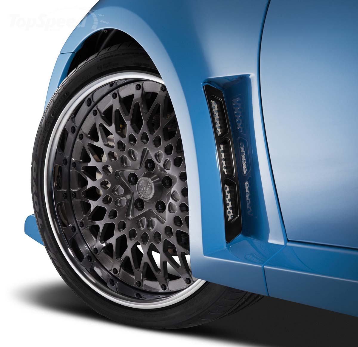 | 葉子鈑經過暴龜加工,然後塞進19吋鍛造鋁圈,各家改裝廠為了參展可是絞盡腦汁。 |