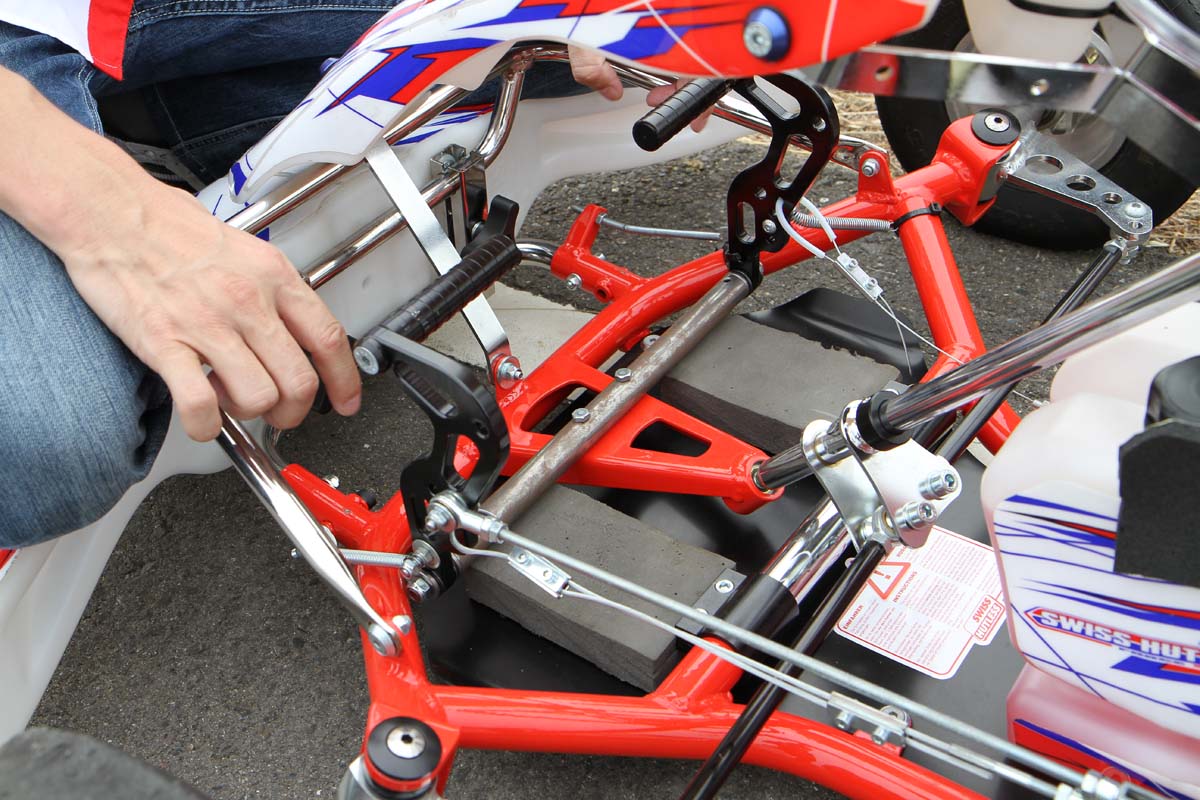 而為了提供標準規格的Karting賽車,給所有參加小小賽車手體驗營的小學員們使用,以便養成正確調校車輛底盤的觀念,BC Racing特別斥資購買近十部的瑞士進口Swiss Hutless Rental小型賽車,其對於車身骨架的打造,基本上都是使用高鉬碳鋼焊接而成,可別小看這構造簡單的幾根鐵管,其所組成角度、管徑粗細,可都是經過相當研究才組合而成,加上因構造簡單,所以只要更動其中一部分的鋼管規格,就能影響到整部車輛的過彎特性及穩定性。車身外殼部分,主要是以ABS強化塑膠製成,並為快拆設計,方便車輛因碰撞破損時更換。