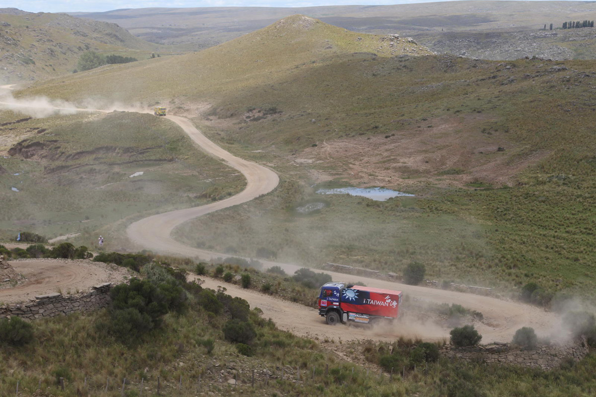 從Villa Carlos Paz 到 San Juan的賽段,是今年達卡拉力賽中SS里程最長的一個賽段,長達六百多公里的賽段裡,其中有518公里的計時路段(SS),對車手和車輛都形成嚴苛考驗,雖說卡車組的計時路段略少(331公里),但跑在崎嶇起伏的狹窄山路上,一般路段和計時路段根本沒有差,陳和皇駕著馬力強大的i-Taiwan卡車,在長滿灌木叢的狹小山路上苦無用武之地,而且為了想超車,一路吃著前車的車尾塵,跑得相當悶