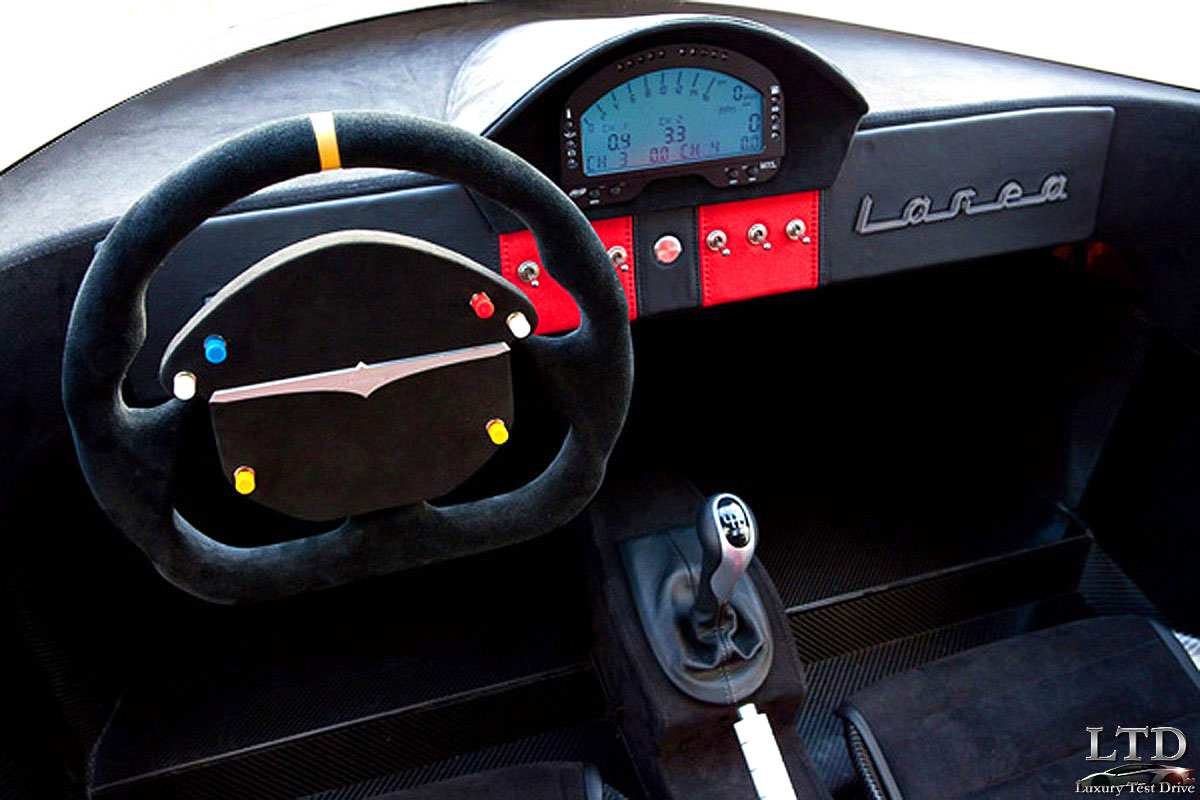 Fahlke Larea GT1 S12 的車身是利用碳纖維所打造,因此才能有效抑制車身重量高達900kg,鋁圈部分為了操控性僅搭載18吋鍛造部品,至於煞車系統則交給Brembo前六後四系統來壓制這輛狂暴巨獸。