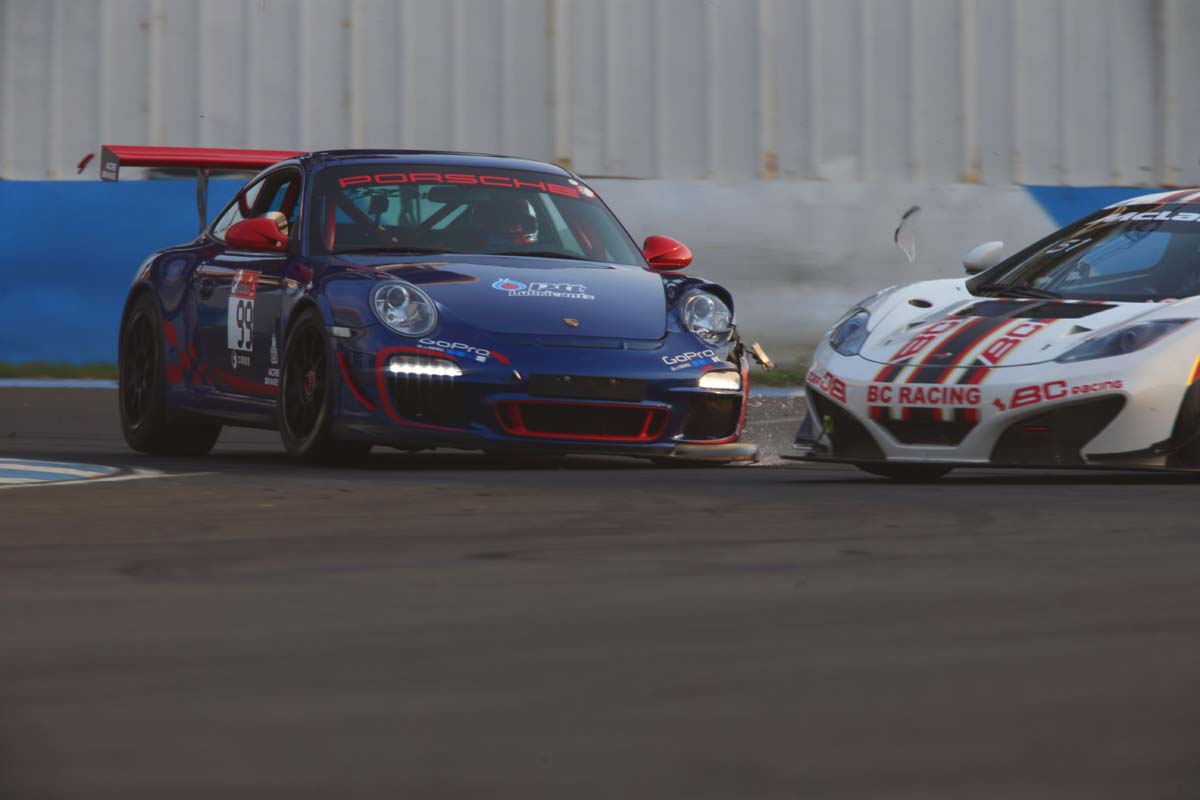 | 由於跟BC Racing黃錦章在16號彎中發生碰撞,不僅導致Mclaren MP4 GT3受損,同時羅紀竣的Porsche 997 GT3 RS前水箱也發生破裂造成水箱水一路狂噴而影響賽道路面,最終因違反藍旗未讓車規定被處以賽後加罰30秒。 |