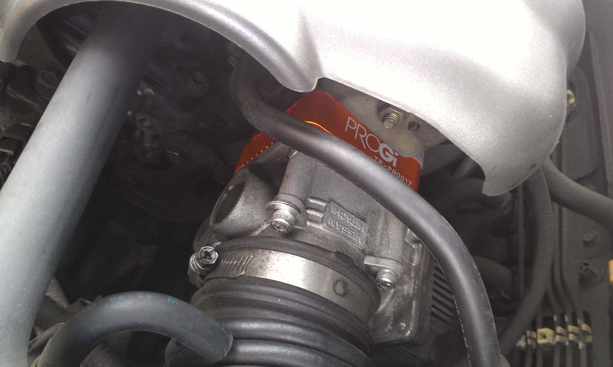 約定保養當天,帶著慣用的Speed Master機油回原廠,看著技師熟練的進行機油更換與節氣門清洗,安裝完成PROGI節氣門墊高座後以原廠檢測電腦進行調教與怠速學習,安裝當下,連技師也誇獎PROGI節氣門墊高座的商品質感佳,約莫個把個鐘頭即安裝與調教完成,尚未進行上路測試前,原地重踩油門即感覺非常順暢,看著轉數表直奔紅線區感覺好不暢快,實際上路後先過一段平面道路,感覺低速行駛與起步時油門的反應非常靈敏,油門輕點立即有反應,完全不會拖泥帶水,後續直接轉上高速公路測試,在閘道加速時,油門重踩下引擎轉速快速向紅線奔去,轉入三檔時已經破110km/h,加速暢快程度比新車時還棒,油門稍加深,立即退檔加速,毫不遲疑,完全改善先前電子節氣門那種加速遲緩感覺,一路直奔桃園再轉回,返家停妥後,仍不斷回味,原先看雜誌時介紹產品時,說明節氣門墊高座是提昇NA引擎的效能一大利器,原本還帶有質疑,但現在我深深給他一個「讚」~~