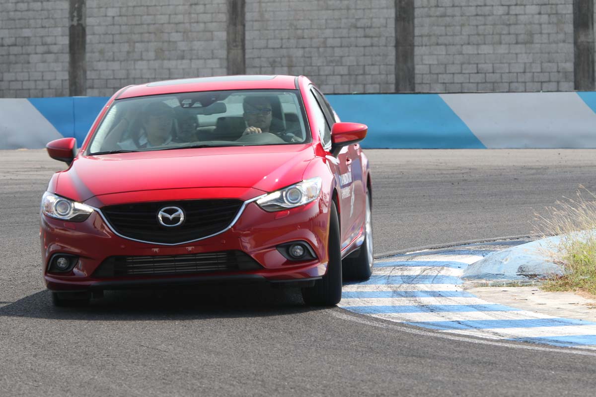 Mazda6的車長達到4870mm,這個Size已經與M-BENZ E-Class及BMW 5系列相仿,屬於中大型房車等級,然而,由於配置SKYACTIV輕量化科技,不論是在車架、底盤、或是引擎本體上,Mazda6都擁有相當突出的輕量表現。Mazda6柴油版車重僅1550kg,是同級尺寸柴油車中最輕的一款(多數中大型房車柴油版車重都超過1700kg)。如此的重量優勢讓Mazda6在面對刁鑽的連續繞錐測試時,可以減緩在連續鐘擺動作下逐漸累積的G值負荷,再加上,Mazda6的方向機齒比大膽地採用了比一般中大型房車更為靈敏的設定,使得這款中大型房車可以擁有逼近中小型房車的靈活感。