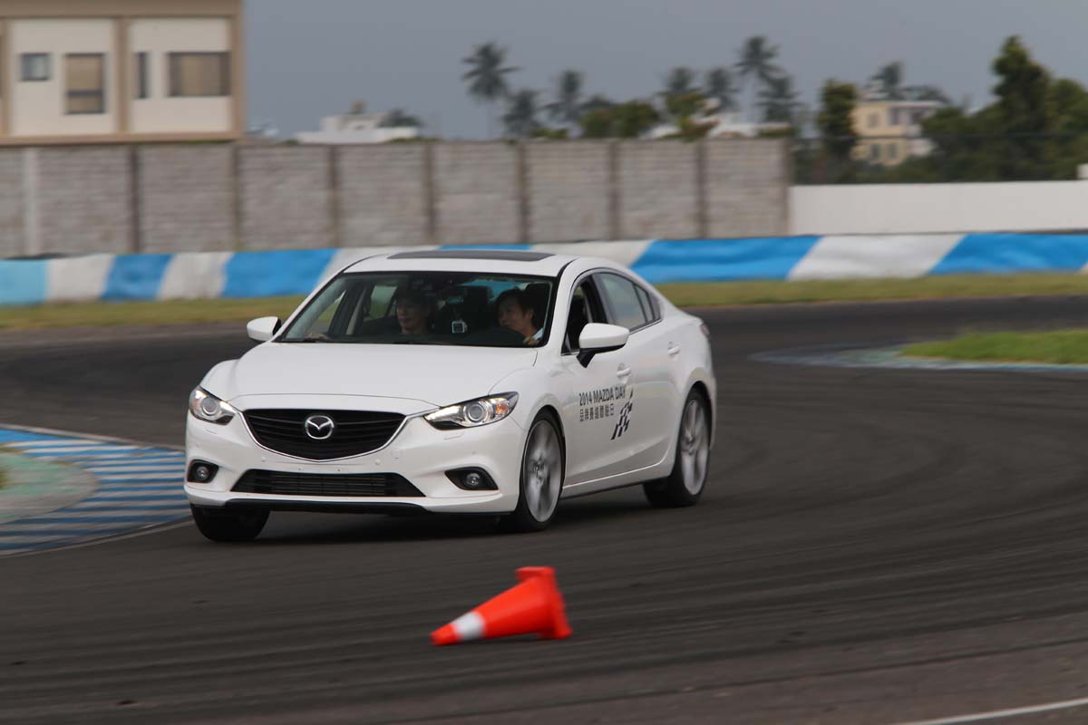 | 透過Slalom計時競賽關卡,可讓學員們親身感受屬於中大型房車尺碼的Mazda6,竟也能如此靈活。 |