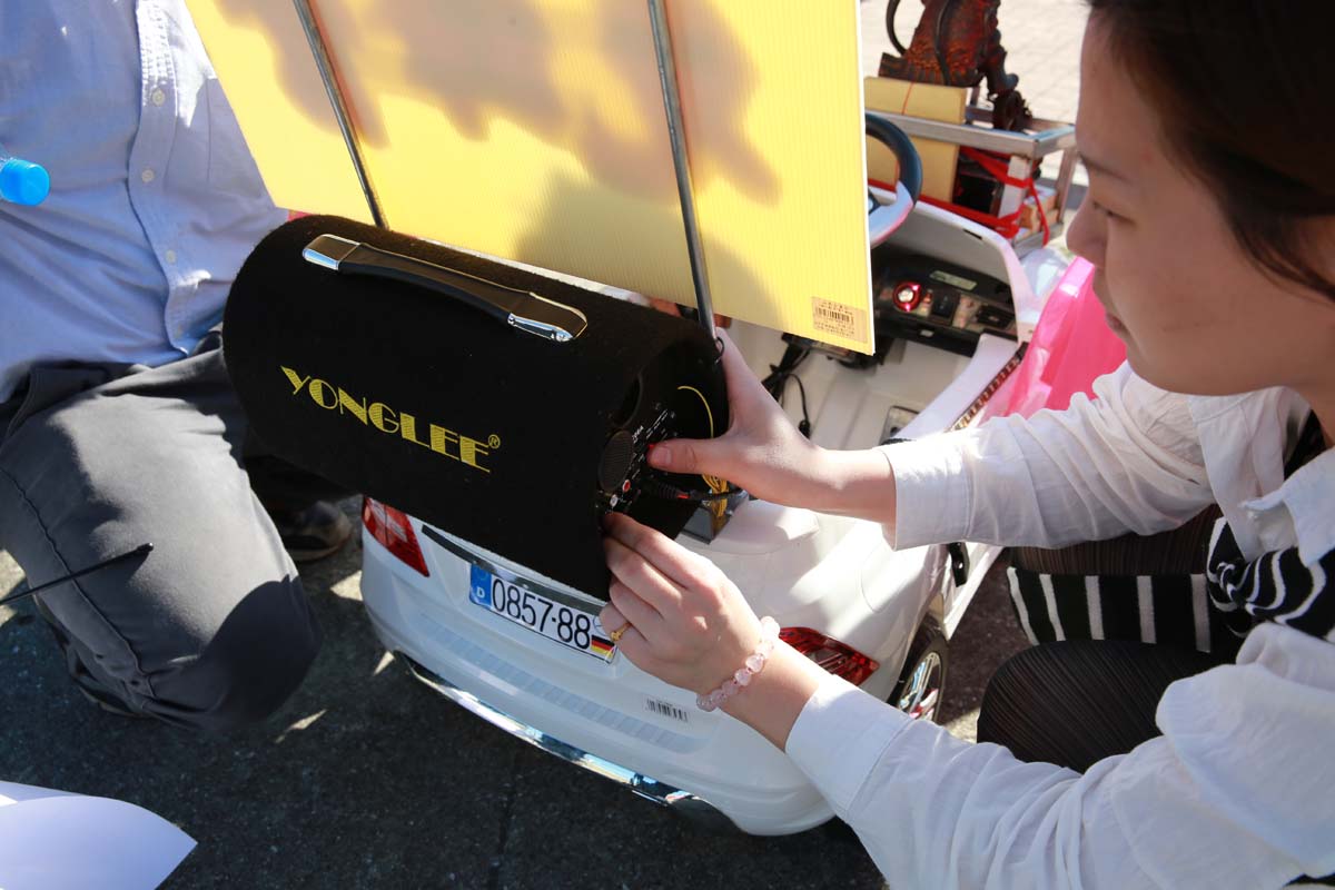 | 這輛陣頭前導車相當專業,還自備音箱放電音,注意看喔!這輛車有大牌可以上路!! |