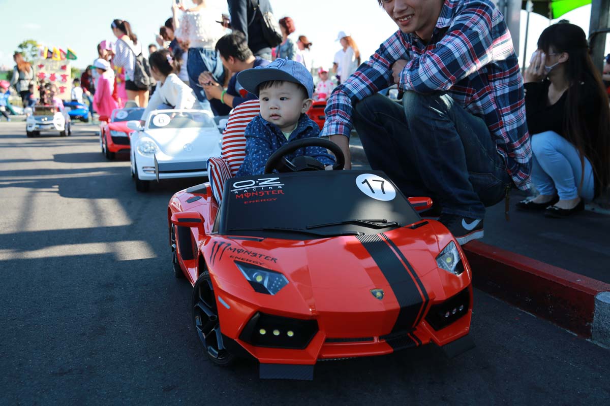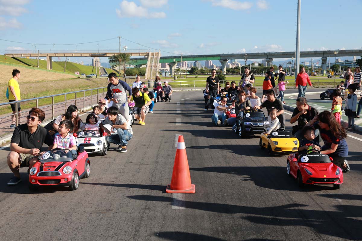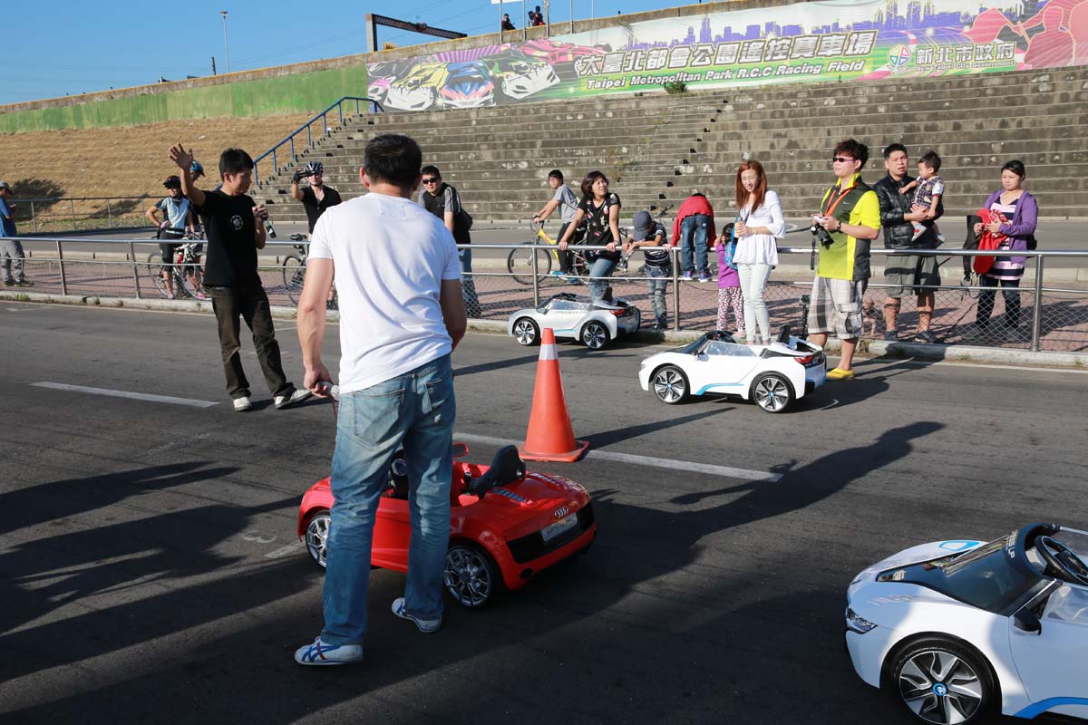 這次是KidcarsClub兒童超跑俱樂部第六屆車聚,舉辦聚會的原因就是大人小孩以電動車會友,小朋友可以聚在一起玩,大人可以互相觀摩、交換改裝心得,因此參加的車友愈來愈多,好不熱鬧。11月22日是兒童超跑俱樂部第六次舉辦大型車聚,而且是第一次動態車聚,會選在二重疏洪道這個遙控車場地聚辦的原因,就是會有趣味直線加速比賽。這次前來參加的車輛數超過50輛,大小朋友合計破150人,在正式比賽開始之前算是一個靜態展示時間,小朋友不停在車上擺出各種Pose給大人拍照,家長們也是人手一部相機幫小朋友留影,現場和樂融融。