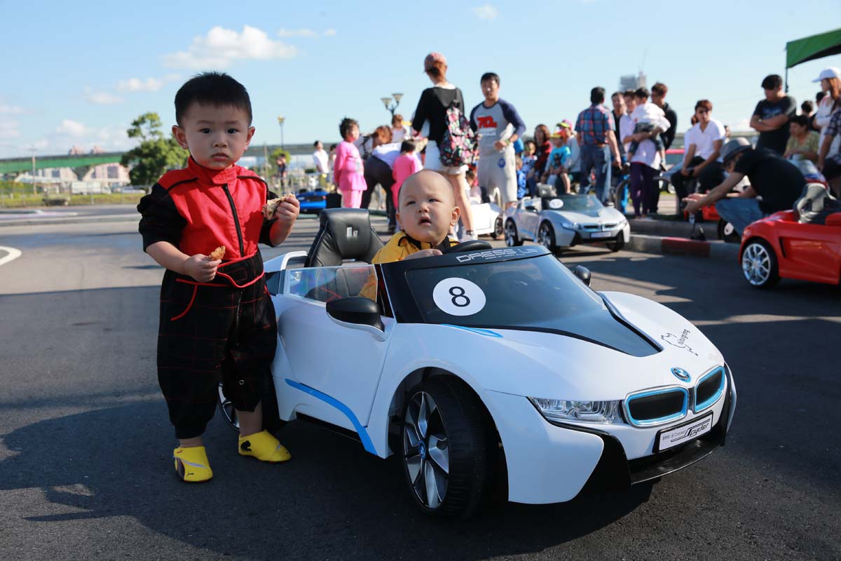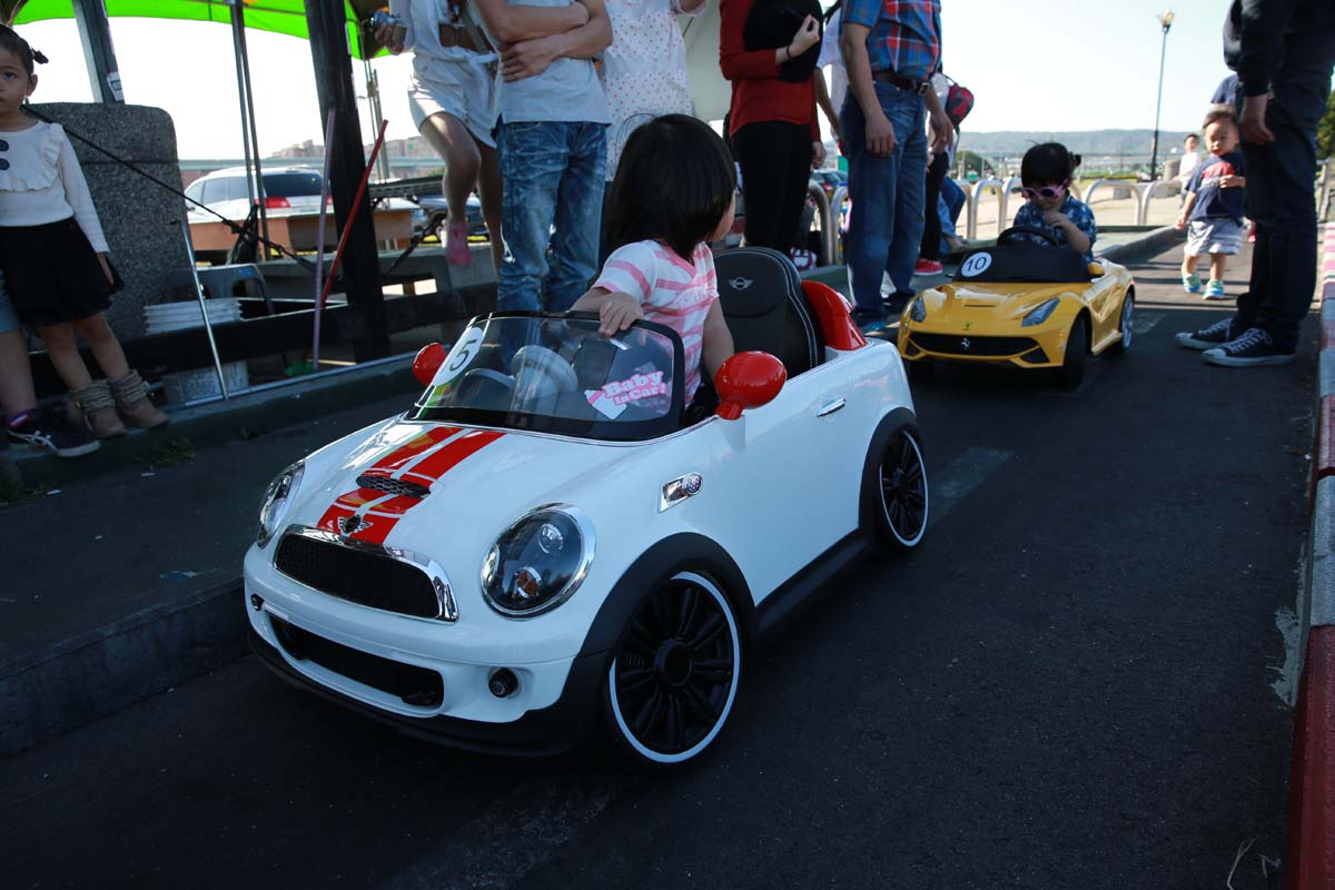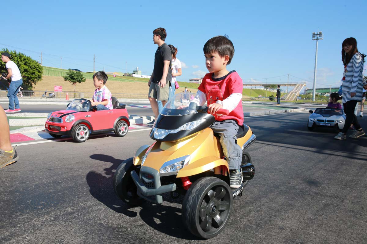 | 電動車不只有四輪車型,也有三輪或是兩輪車,在現場有如七輪大亂鬥一般,小朋友會不斷上演衝出跑道的戲碼。 |