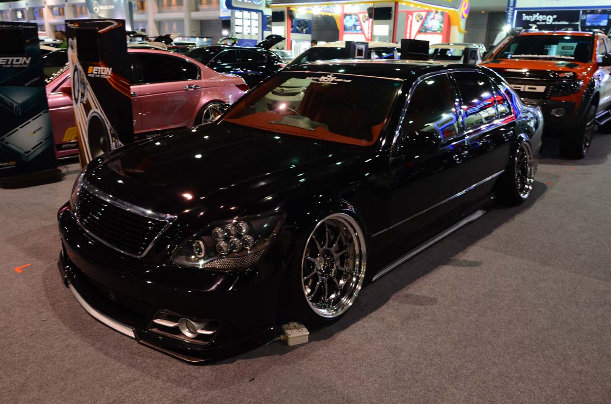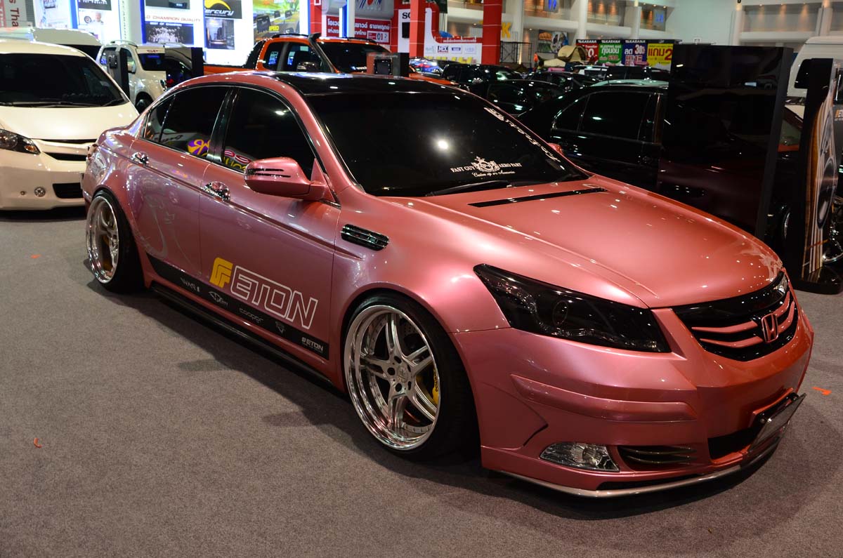 不知道是不是車展規模太小,或者是各品牌發表新車不多,在國內已發燒很長一段時間的海拉風(Hella Flush)改裝,卻成為泰國車展的意外焦點,排排站的這種ET值超緊繃的輪胎外擴改裝車在會場另一區以各種型態出現,除了Civic、Accord房車,370 Z雙門跑車外,Hyundai H-1商用廂型車也成為改裝目標,現場在各式重改車輛緊密的展示區邊,還有當地眾多改裝部品及汽車音響廠商進駐,相當程度地突顯出泰國當地玩車文化。