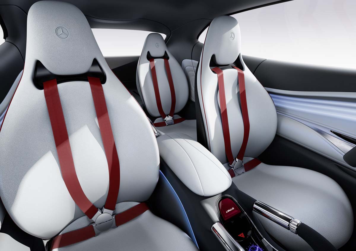 | 2+2的車艙空間著重寬裕的乘坐品質,內裝仍屬十分概念化的初步設計,但橫跨中控檯的大型螢幕已預告了未來車用配備的設計走向。 |