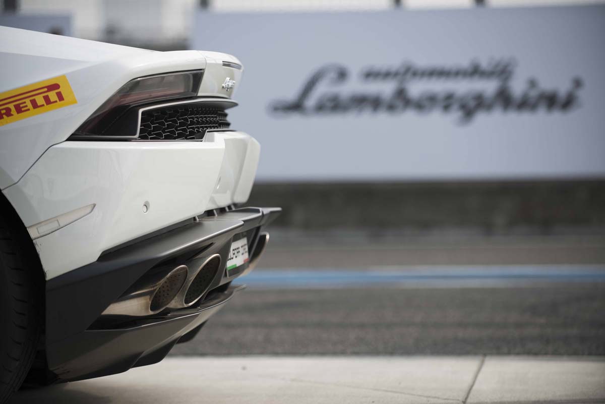 對於這次的賽道試駕活動,我有更多期待,先前試駕雖已感受到它在性能方面的大幅進化,但受路況的限制,某些方面的特性對我來說仍是一個謎,因此當我開著Huracan LP610-4衝進賽道的那一刻,它必須毫無保留的展現出真面貌。一踏進賽車場,四部白色Huracan LP610-4已等著我們的到來,對它雖不陌生,但簡單線條所勾勒的力與美,視線依舊無法從它身上離開,這就是Lamborghini的獨特魅力。不管從哪個角度看,Huracan LP610-4都相當誘人,正車頭,一對眼神銳利的頭燈加上寬闊又低扁的比例,霸氣十足,側面輪廓則以一道弧線貫穿前後,讓空氣完全找不到可以逗留的地方,可說是力學跟美學的典範。車尾同樣呼應Aventador LP700-4所建立的視覺印象,複雜的立體曲面融入散熱孔與調整氣流的功效,兼顧散熱效能與造型的完整度,也強化了整部車的視覺張力。試駕一開始先由教練載我們跑一圈,介紹賽道特性、路線、Apex點跟煞車點的提示後,再來就是我們上場的時間了,即便每人只有三圈駕駛Huracan LP610-4的機會,時間不長但車上因為沒有隨車人員,而是由教練駕駛的Huracan LP610-4前導車帶著我們跑,這樣的試駕方式讓我們比較自在一些,可以充分體會整部車的運動特性。