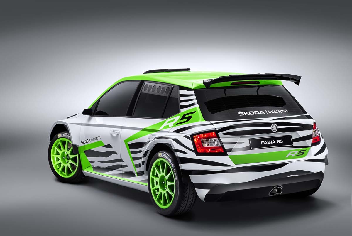 以概念車形象的身分登場,全新世代Fabia R5展現出 Skoda Motorsport多年來對於拉力賽事的熱情,也宣告2015年將以這輛參戰WRC世界拉力錦標賽(World Rally Championship),外觀明亮的綠色加上黑白相間線條彩繪,搭配?體車身套件的前後輪拱,引擎蓋與車頂都增加了進氣散熱孔,再加上大型尾翼、中置排氣尾管等,完全呈現出比賽車的戰鬥樣貌,底盤部份則因應賽事來做調校,懸吊系統為麥花臣設定、輪圈及米其林賽事用胎也皆為拉力賽規格。動力部分以符合FIA最新賽車規則,Fabia R5搭載1.6升TSI直列四缸引擎,不過未公布動力輸出的數據,預估最大馬力會來到315hp/6250rpm及43.3kgm/5000rpm的峰值扭力,搭配上五速序列式變速箱及四輪驅動系統,車重方面同樣依照規定為1230公斤最低重量,相信大家都期待這輛"綠光小飛俠"在全新賽季中的表現。
