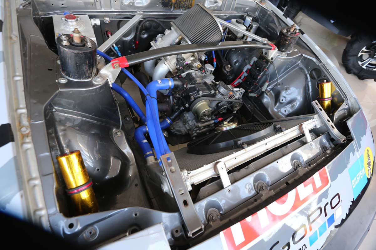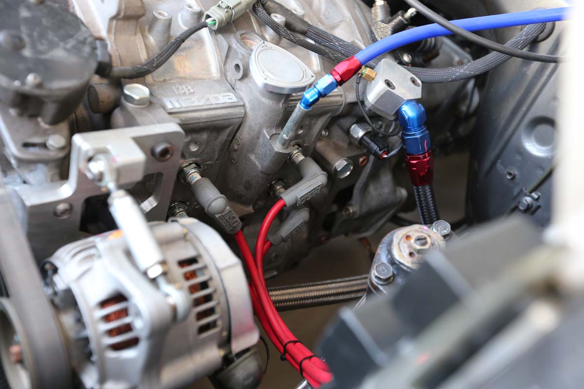 這次最大的重點就是放在引擎本體及變速箱系統的更換,為了堅持以自然進氣應戰,引擎本體部分則是由提供利曼耐久賽的美國廠商購入,9.7:1的壓縮比直接就逼近轉子引擎的上限,將傳統油底殼廢除,採用阻力更低的乾式油底殼將機油直接注入,另外13B原廠的位於埠(Port)上的進氣埠(類似四行程成的進氣道)更是直接封掉,採用兩具58mm的噴油嘴及短歧管達到更優良的高轉速反應,Jay也表示這樣的設定完全就是轉子引擎高轉速、高出力的特性,在這樣徹底捨棄低速扭力的情況下,靜態起跑的規則就相當的吃虧。