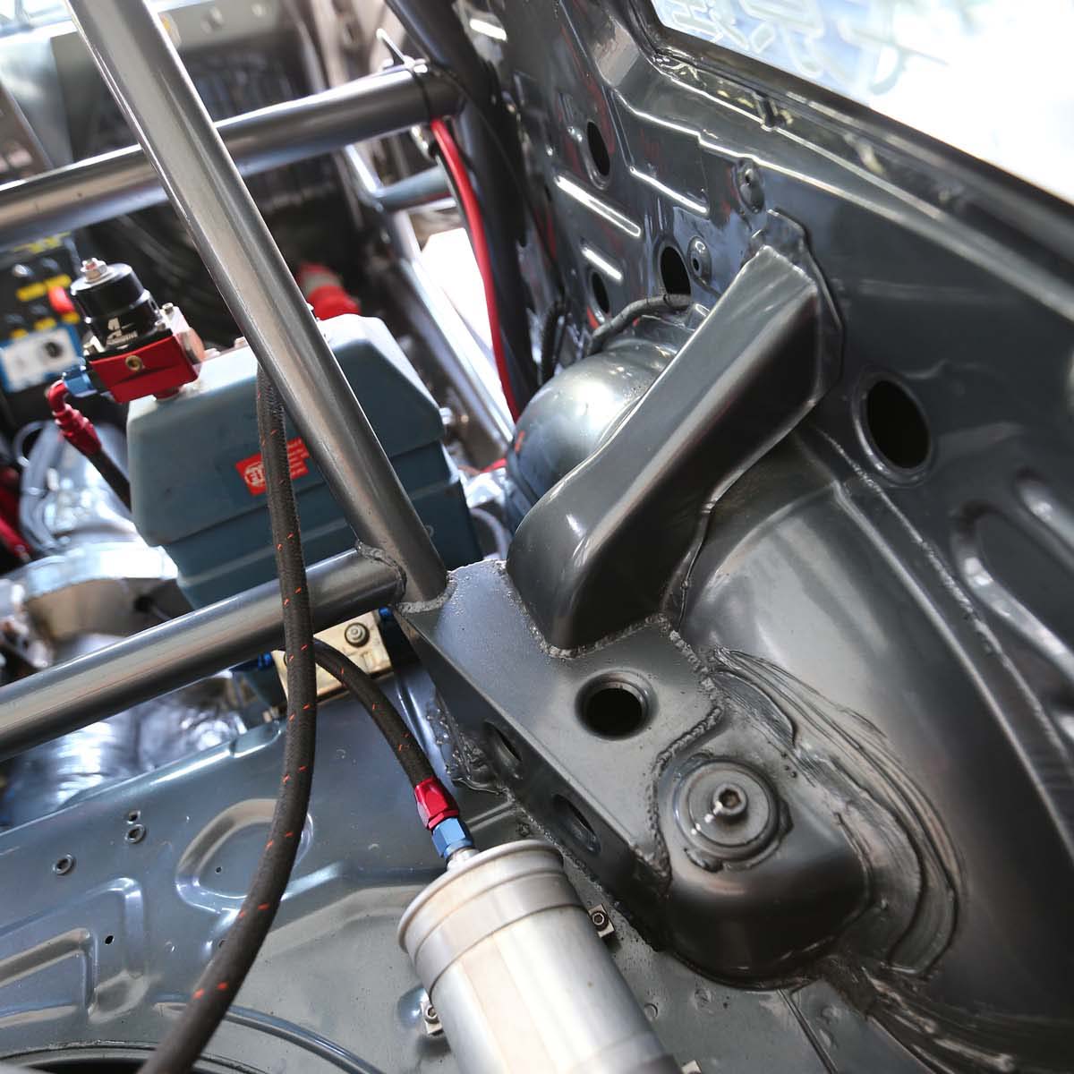 | 車體的補強僅以防滾架及拉桿為主,本體並沒有施以任何的點焊,另外許多施力點Team Orange則會追加鋼片來補強。 |