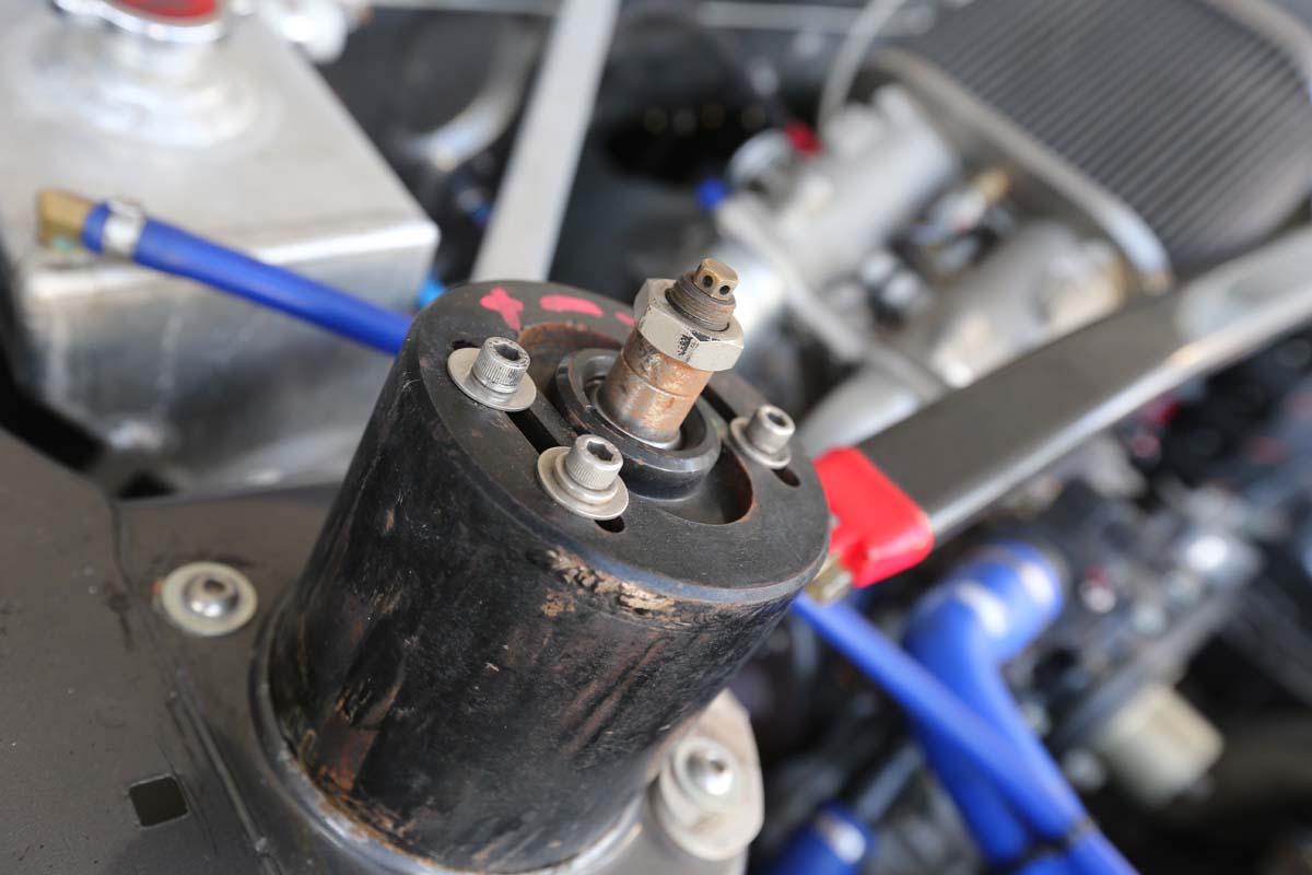 | 香菇頭下方的紫色部分就是2支噴油嘴,在加壓後能提供2700c.c.的超大流量,大量的供油才有辦法提供轉子引擎的耐用度,這也是許多耐久賽轉子引擎都必須揹著大油箱的原因。 |
