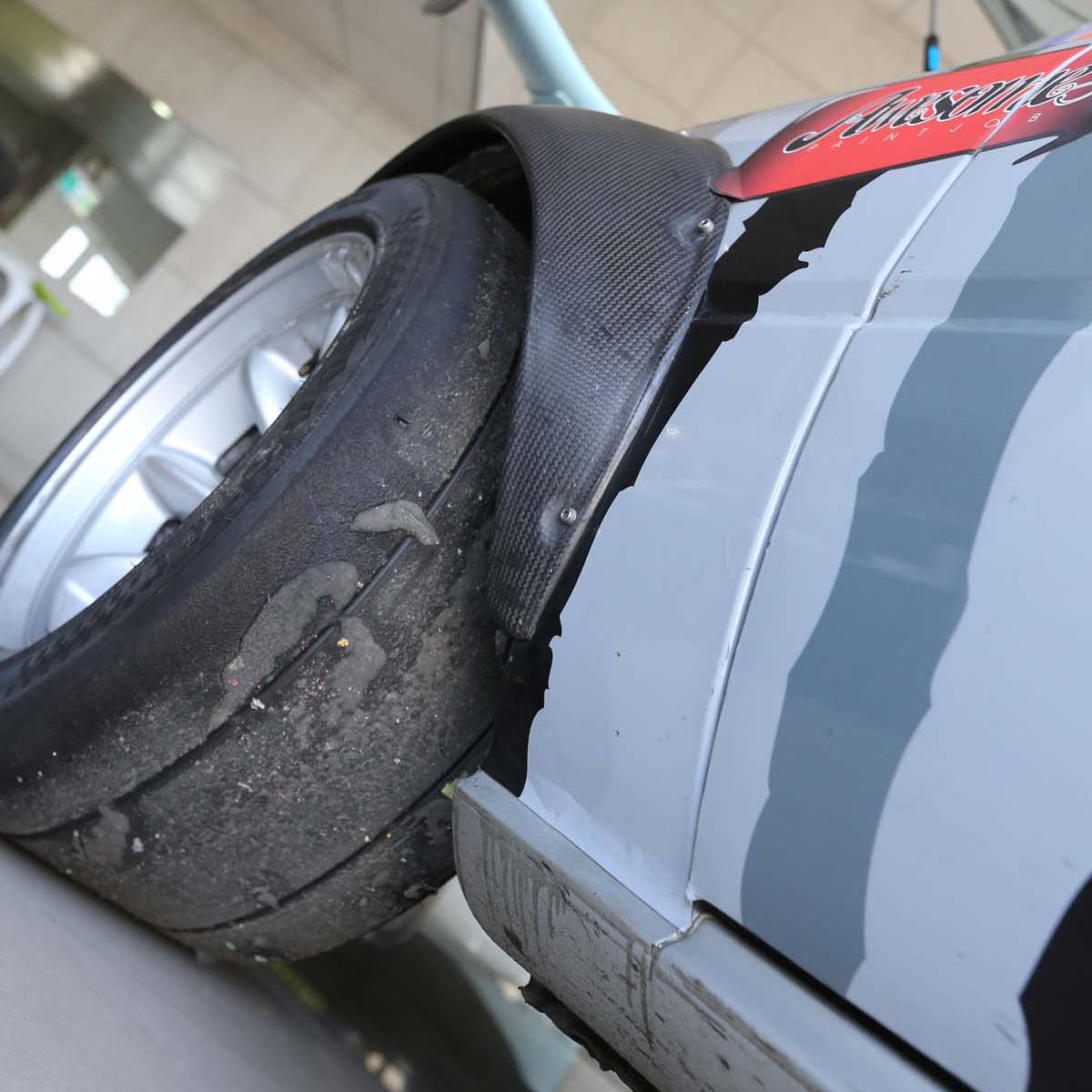 除了動力提升外,SA22C的車體結構說穿了還是屬於30年前的設計,後軸的設計與AE86相同採用固定死軸的老式玩意,前輪軸承更是直接與碟盤採一體式設計,在國外就時常會發生受力過大導致前輪軸承直接斷裂,加上原廠內龜空間不足,無法容納更大胎面的輪胎,也因此這些問題如果無法克服就真的無法在大鵬灣激烈的賽事中討生活。