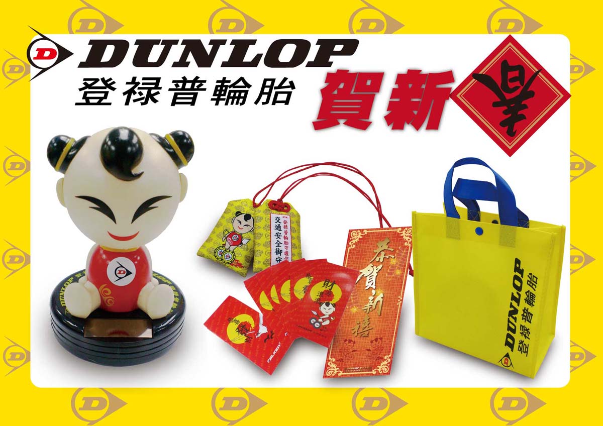因應新年到來,登祿普輪胎關心您的愛車是否也該進場保養更換輪胎了呢?2015/2/1~28止,凡至登祿普輪胎全省授權經銷門市購買DUNLOP輪胎4條,即贈送DUNLOP開運吉祥福袋一組,數量有限送完為止!本活動限購買DUNLOP輪胎15吋規格以上。