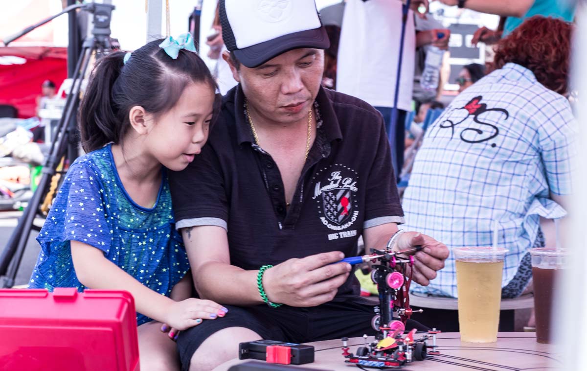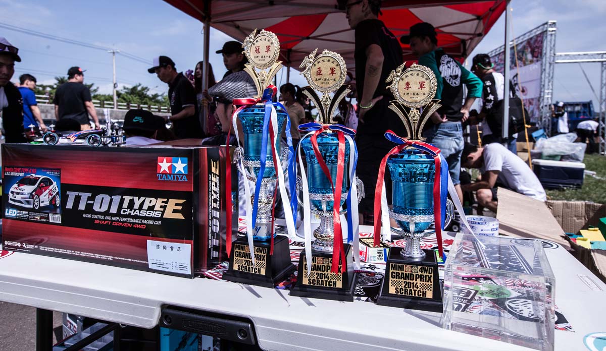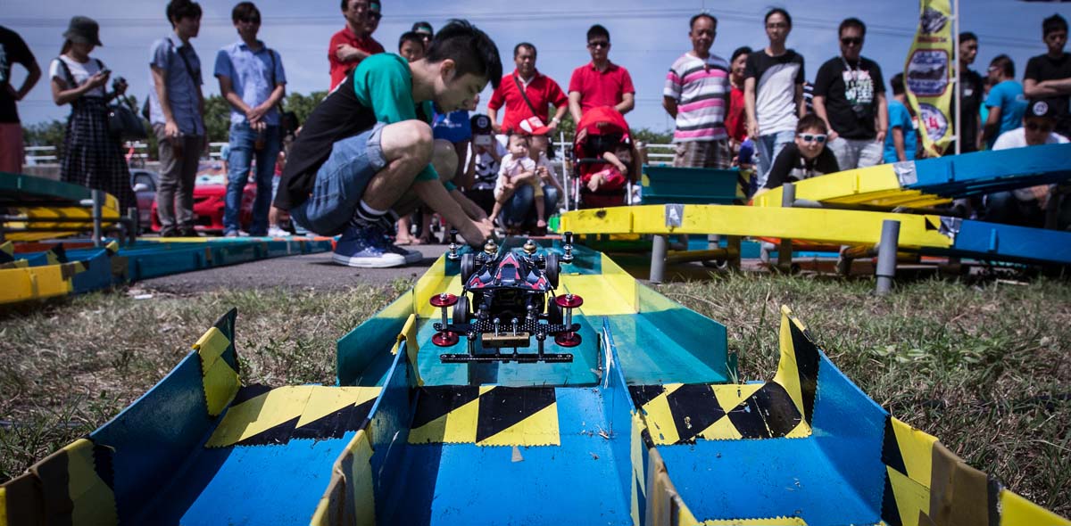 就當一行人拿著黃色及藍色的軌道開始組裝,車主們幾乎人手一盒透明塑膠盒,打開盒子內正是許久不見的四驅車,六年級的朋友一定有過下課直奔玩具店與朋友開始較量誰的四驅車比較猛的回憶,由於機構相當簡單,也有不少車主跟著小朋友一起組裝自家四驅車,看著小朋友專注的眼神及滿足的表情,我想回家的聲音也就不曾聽到,大小朋友一同為了桌上的獎盃玩得忘了時間。