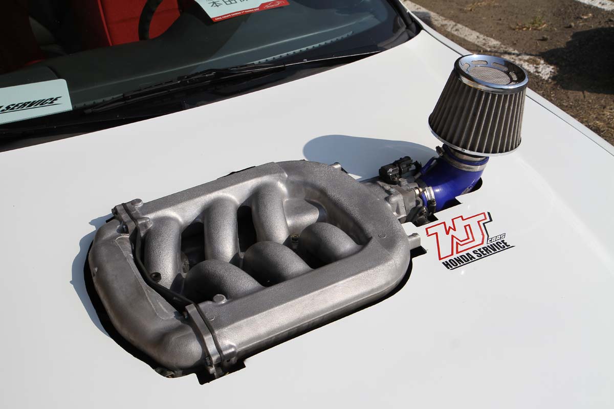 這部六代Coupe是筆者一到現場目光最早被吸引到的車款,原因在於凸出於引擎蓋上的V6進氣歧管與香菇頭,心想難道是異種移植嗎?一問車主才知道引擎蓋上的進氣歧管是Honda老大哥常使用的J30A V6引擎部品,不過目前只是試裝而已,原本打算趕在這次大會師中移植過來,不過時間上來不及,所以只好先做個樣子,不過醒目的改法也真讓人無法忽視其存在,改好時筆者在抓出來好好報導一番。