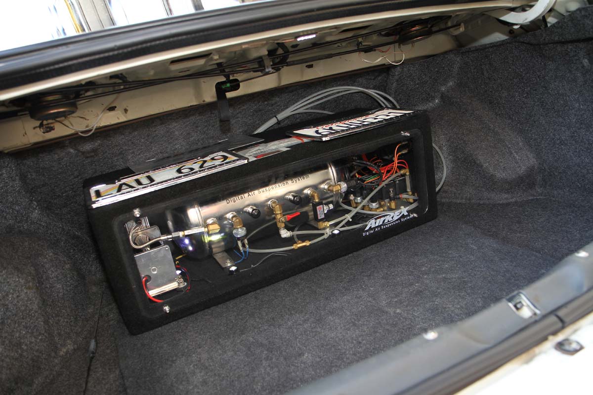 這部外觀純粹走海拉風式樣的白色五代車款,外觀改得相當完整,海拉風需要的元素幾乎都有,包含深唇大凹鋁圈、繃胎、低趴車高、車頂腳踏車架與外八輪胎定位角度等,讓老車也有新面貌,據同時也是改裝店老闆的車主表示,愛車的改裝幅度以玩海拉風的角度來看只算小改,還不到偏執狂的程度,目的在兼顧日常使用的便利性,這也是為何會選擇氣壓避震器的緣故,因為這樣隨時都可看路況調整車高,不用擔心車底會磨到。
