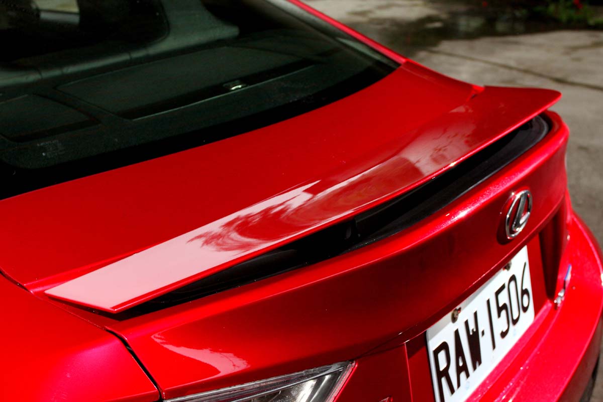 | 厚實強壯的後保桿下方設計有黑色網狀散熱孔與分流器,兩側則有源自於IS F的雙邊四出排氣管,彰顯不凡的性能跑格。 |