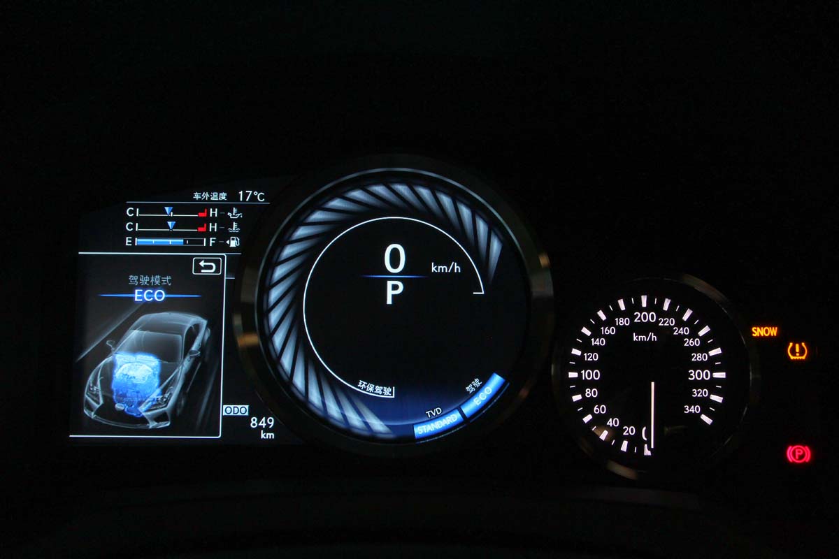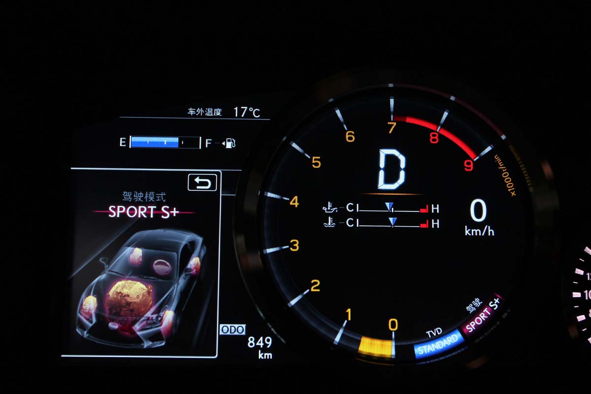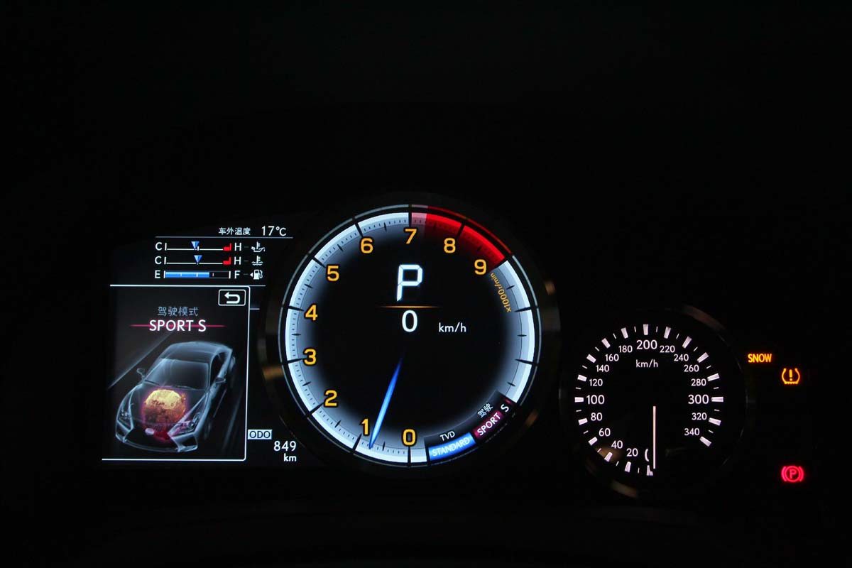 另外,車艙內的亮點還有全新設計的數位類比雙圓儀錶板,能隨著駕駛模式切換而有截然不同的顯示面貌。在Eco模式下,轉速錶並未有任何刻度,而是以旋風扇葉片的圖形來呈現環保風;在Normal模式下,則顯示出一般轉速錶,並在中央處顯示車速與檔位;當切換Sport S模式時,轉速錶立刻襯上一圈亮白色框,瞬間提昇了熱血氣息。一旦切換至Sport S+模式,轉速錶上的底色、指針與刻度皆消失不見,而是以黃色光條來標示轉速狀況,同時將油溫與水溫資訊納入其中,將戰鬥氛圍拉至極點。此外,左側的液晶顯示幕,也能顯示各模式下的車輛狀態圖形,更能提供G值感應、變速檔位、胎壓偵測、單圈計時以及TVD扭力分配等資訊,能夠充分滿足車主從一般行駛狀況到賽道競技的全面資訊需求。