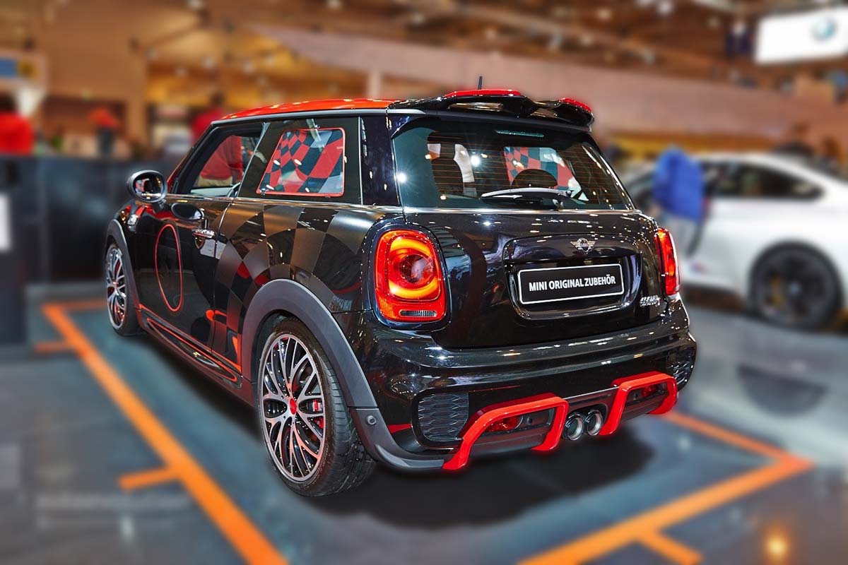 John Cooper Works(簡稱JCW)這個改裝品牌,為Mini打造專屬改裝套件成為御用品牌,黑紅配色加入賽車格紋讓其競技氛圍更為鮮明,第一眼絕對會注意到的就是全新的前保險桿總成,接著後保險桿也改裝成JWC式樣,與尾翼線條相對應,不管從車頭或車尾看,視覺呈現都更顯粗曠,此外18吋的立體凸面多幅式鋁圈、JCW對向多活塞煞車組等,同時新的可調式懸吊系統讓車身降低10~30mm,JCW使Mini F56運動風格更加強烈。