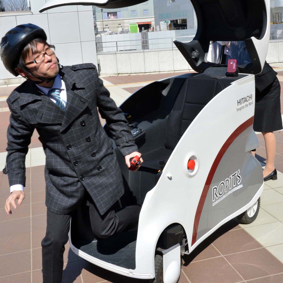 | 日本企業日立對自動駕駛技術信心滿滿,圖為該廠於2013年發表的單座自駕載具「Ropits」。 |