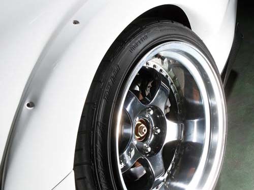 | 寬達12J的後輪圈相當誇張,不過搭配RE雨宮GTAD II寬體套件卻很適合。 |