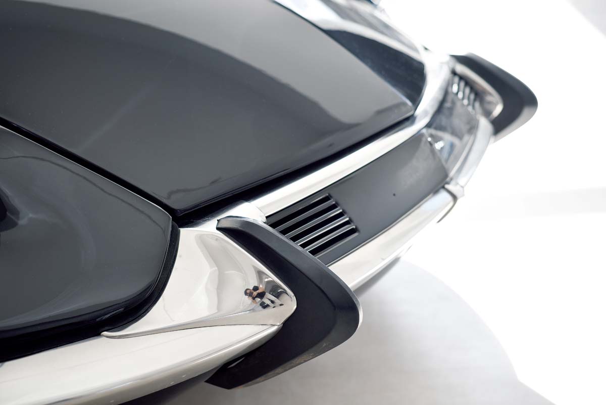 我所擔心的是,廠商本身會否不關心這兩部車作為話題以外的價值,而使得今天的美事多所阻礙,讓接觸體驗的過程由於未獲適當配合而變得掃興。所幸,為了這兩個品牌的重返而準備許久的寶嘉聯合,是懂得品牌經典價值的。打從一開始的詢問受訪意願,到整個拍攝、採訪過程的移車、場地清空,我們獲得的是全力配合。雖然原本安排的動態試駕由於兩車的保修排程而作罷,但大家為了再現經典而共同努力的心情,其實正是這些老車子的魅力所造就的感動。先前對「Deesse」和「history」的說文解字,可不是筆者的哲學癮又犯了。因為,當第一眼實際看到DS,我立即能夠體會1957當年後結構主義語言大師羅蘭‧巴特(Roland Barthes)為何形容DS是「從天而降」(fallen from the sky)了。光看那宛如雅典娜(Athena)胸甲的車頭,你就會覺得此駒只應天上有,除了以Deesse這個充滿神話故事色彩的單字為名,它還能叫什麼呢?我甚至不必強調晚了8年才於1963年問世的德國跑車經典Porsche 911的車頭,有多大程度是受到法國「女神」的靈感啟發。