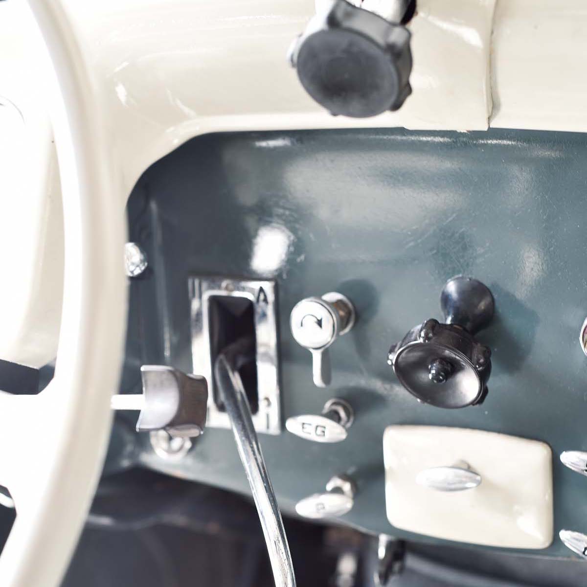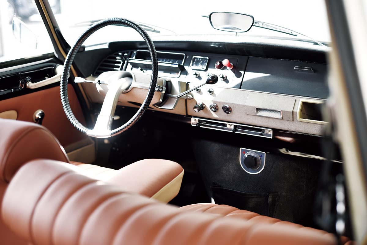 | 雙幅方向盤、簡潔的方形儀錶板,以及3速變速箱,流露一種相對於當代的優雅生活節奏。 |