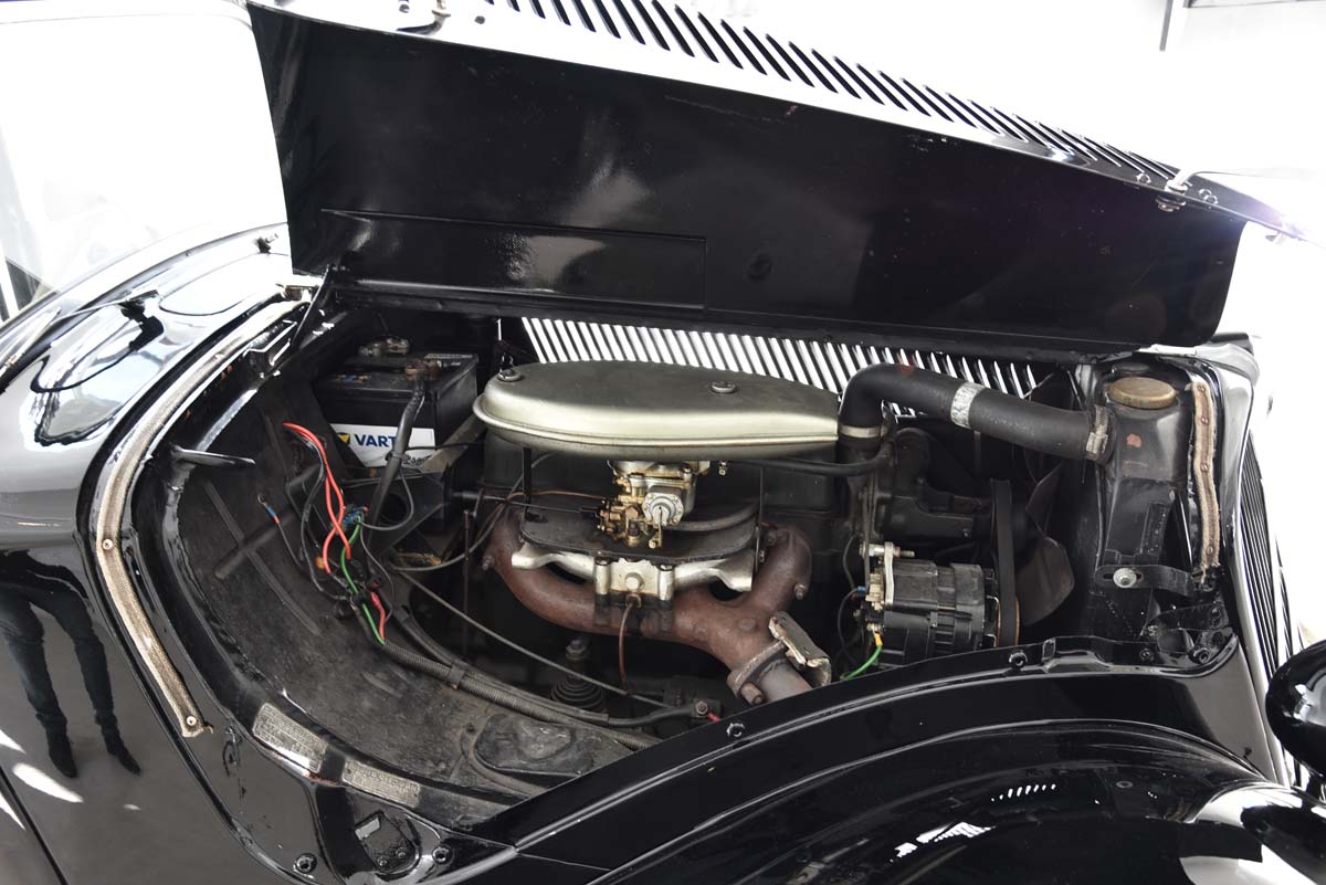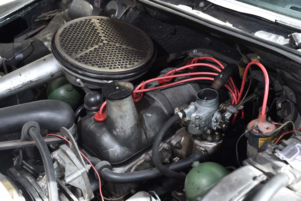 | 此車的引擎室相當漂亮,1.9升的浮動式連結引擎和化油器的狀態都相當良好,可見得是以收藏品的標準在長期保存著。 |