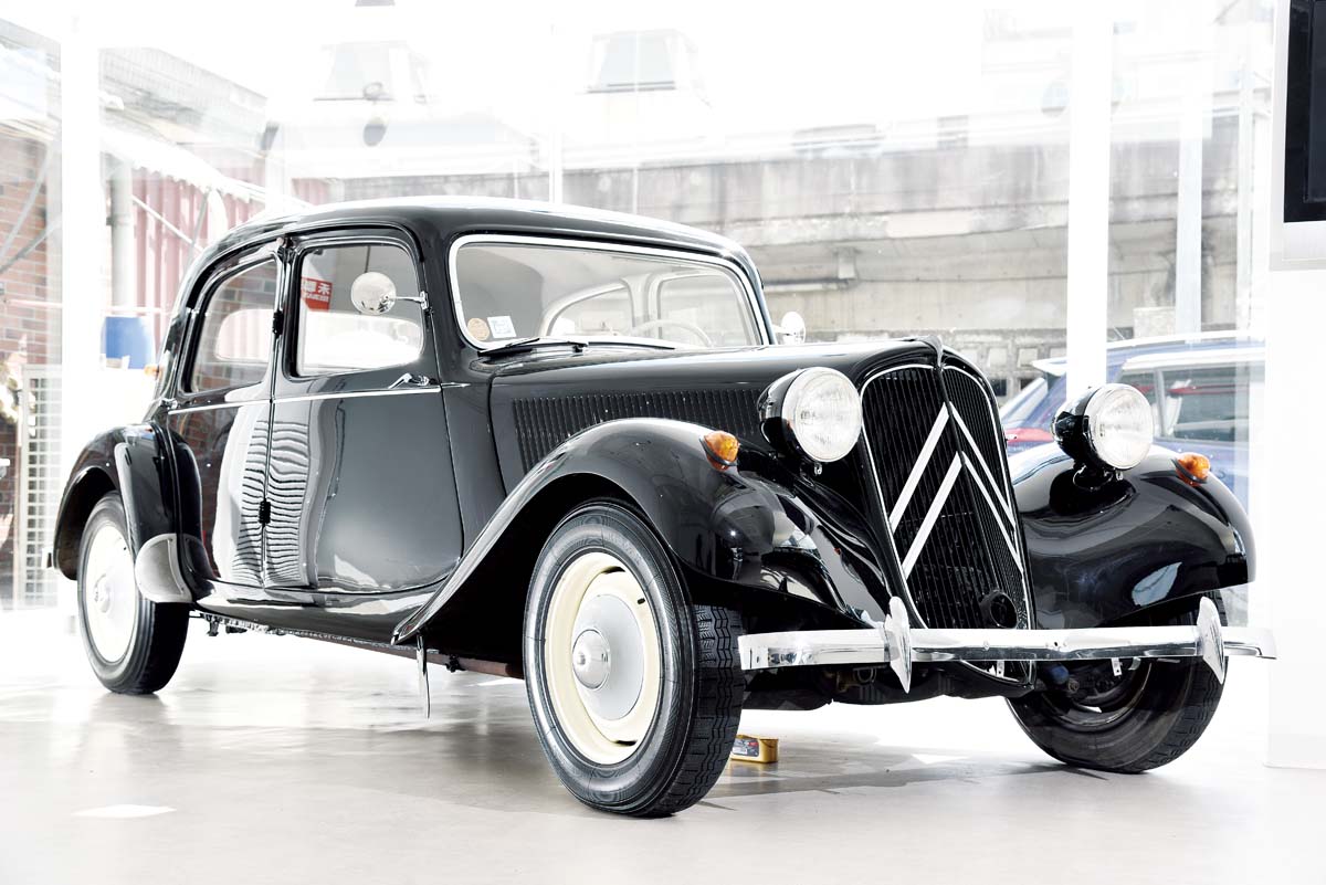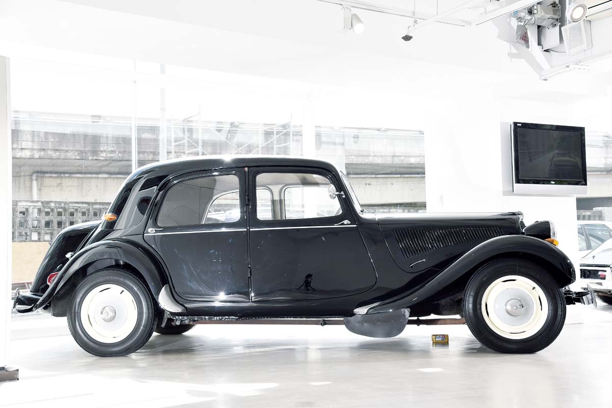就像當時的流行,Traction Avant的引擎蓋也是採取左右背向的「鷗翼式」對開設計,而開關則是左右各兩道以握把按壓式的卡榫。以一部超過80歲的老車而言,此車的引擎室相當漂亮,1.9升的浮動式連結引擎和化油器的狀態都相當良好,可見得是以收藏品的標準在長期保存著。沒有中央扶手的前座予人一份溫馨感,暗示著那個時代的駕駛與前座乘客──簡單地說就是男人和他的女人──之間並不那麼在意所謂的「屬於自己的空間」。同時,後座平坦的整片絨布沙發,也賦予更多關於空間的想像自由。大半徑的雙幅方向盤,以及簡潔的方形儀錶板,流露的是一種相對於當代的優雅生活節奏……當然,它只有三檔的變速箱也呼應著這個事實。從Traction Avant的每個細部觸感,聽到這部車所告訴我的故事,那是關於一個男人的欲望和野心沒有那麼無邊誇大,卻十足穩重、成熟地掌握著屬於自己的世界的時代。