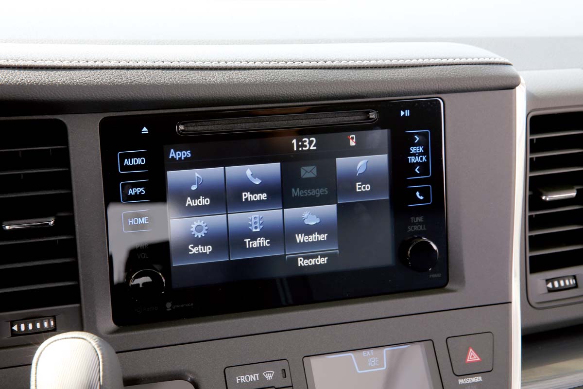 15年式的Sienna主要是針對外觀與內裝的等處進行調整,其中於外觀方面,新年式的頭燈經過小幅微調,儘管造型並未更改但卻更具質感,另外車門把手亦改為鍍鉻式樣,替已頗為大器穩重的Sienna帶來加分效果。本次試駕的SE版本不同於一般車型,其中水箱護罩與下進氣壩採霧黑處理配置,搭配水箱護罩左右兩側鍍鉻飾板與帶有稜線運動特質的前保險桿及19吋輪圈,在大器穩重樣貌中散發年輕動感氣息;儘管車身超過五米,但在車身線條曲線勾勒下則不會顯得太過笨重。至於座艙方面,一坐進車室便可發現中控儀錶造型有著明顯修改,所配置的七吋觸控螢幕則亦改為更具質感的樣式,與左右出風口有著平整感,空調面板也一併進行修改,更寬大的操作介面不僅更易上手,與中控一同整合的規劃也呈現更具駕駛導向的設計,整體風格有著現行家族世代的元素。另外儀錶板從以往單圓改為雙圓設計,搭配中央4.3吋資訊幕,不僅更易辨識也能掌握車輛相關資訊,此外,方向盤、儀錶平台與門飾板在造型更換與車縫線點綴下,散發出高級質感氛圍。