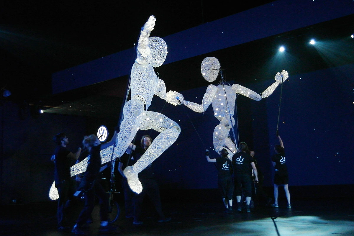 就在品牌之夜前夕,台灣福斯汽車特別開放綵排時段供媒體拍攝,驚奇的多人操作巨型人偶短暫演出,即令人對「Because Its Volkswagen源自福斯」品牌之夜活動充滿更多期待。