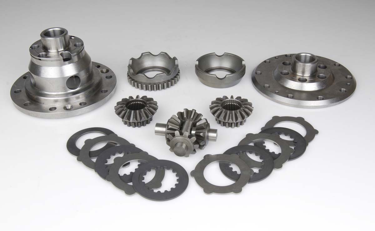 摩片式LSD:內部結構相當複雜,設有一組壓力環和許多摩擦片,且副齒輪的固定方式與傳統的差速器也不相同,而是透過凸輪軸固定在壓力環上,而非差速器外殼上,這種有摩擦片式的LSD,簡稱為摩片式LSD,鎖定率與作動時機都可透過更換壓力環上的凸輪孔形狀來調整,因此非常適合競技車輛使用。