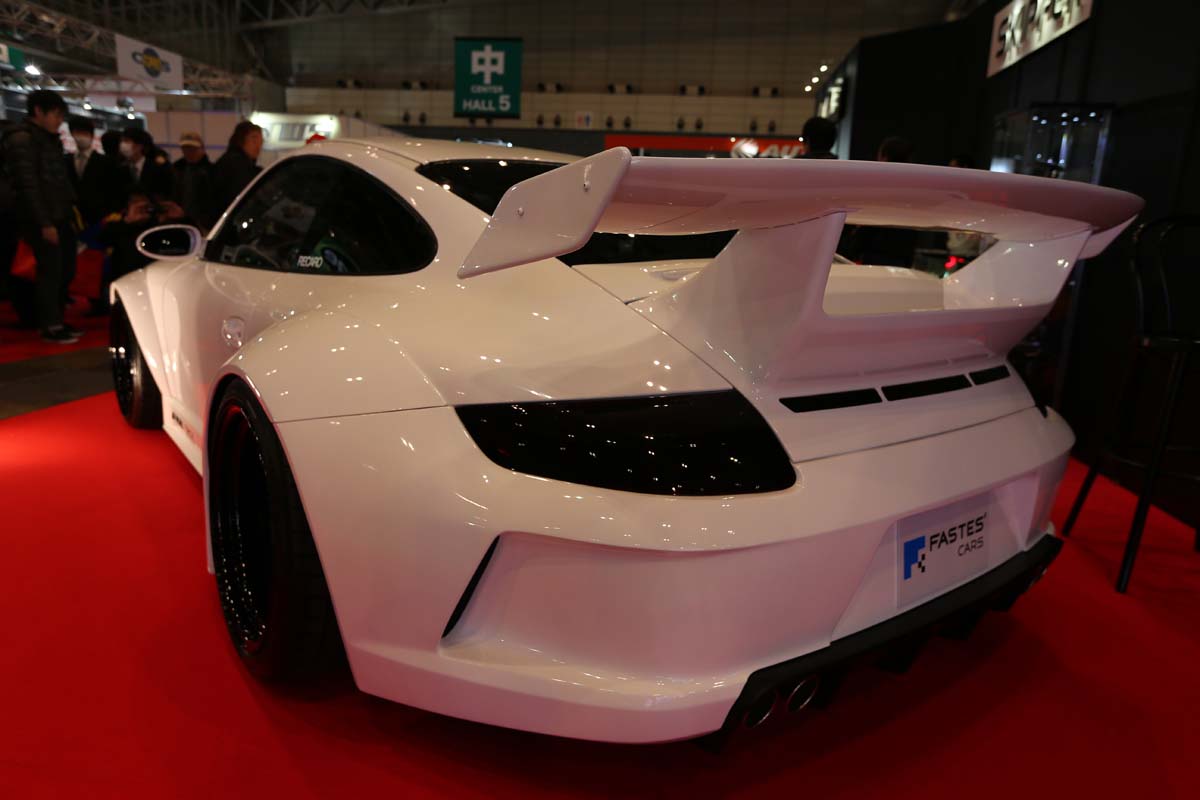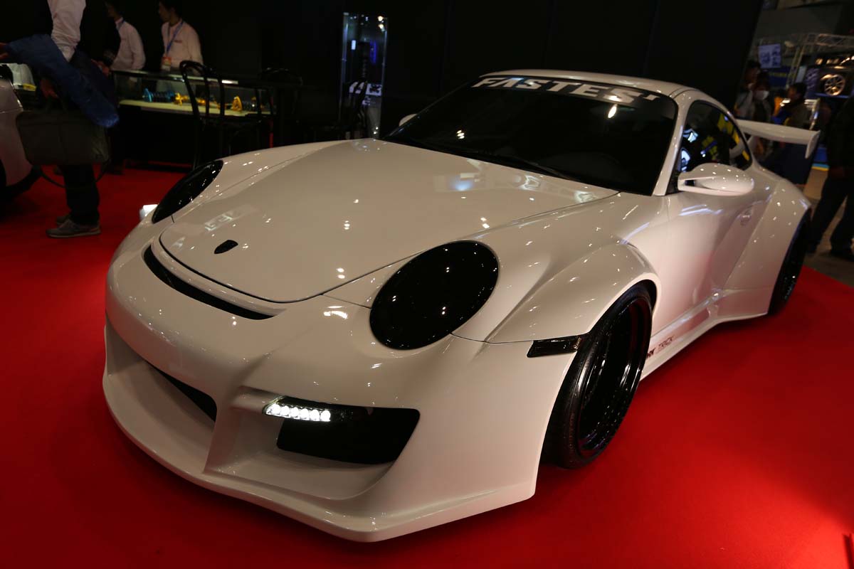| 雖然並非Skipper專門操刀的日系車款,不過聯合展出的FRF仍展出以Porsche 997為架構的寬版青蛙裝,可以明顯看到前後葉子板龐大而圓潤的輪拱造型,相形之下幾乎能與GT3廠車一較高下。 |