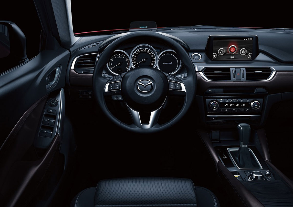 除了亮眼的外型設計,Mazda6也著重於打造細緻、高質感內裝,展現日本的微妙工匠風格。全新規劃之儀表台以流線型的線條延伸至中央扶手,呈現與改款前完全不同的編排規劃,車門與中央扶手皆採用合成皮包覆表面,搭配車門內飾板開關系統以金屬風格綴飾的材質及色調,打造極具現代感的車室空間;全車系搭配簡潔黑色內裝,柴油頂級款更提供淳白內裝色調選擇,彰顯頂級跑房車卓絕品味。(外觀內裝各項配備按照各等級車型搭配有所不同,請以規格配備表為準)