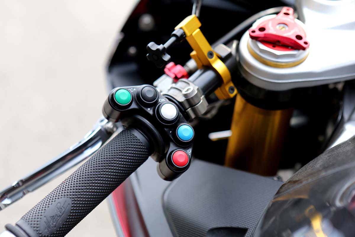 | Extreme Components專門提供給WSBK所使用的簡易型競技化開關,更小、更薄的簡易設計令把手看起來更加清潔。 |