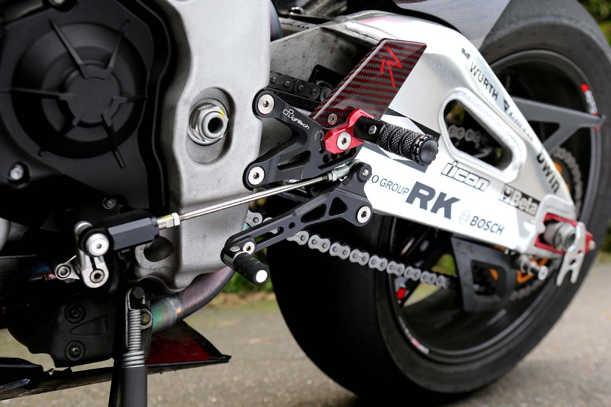 | 原廠踩一勾五的設計不夠快、更不夠帥,極端的車主直接換上Lightech逆打後移腳踏,搭配原廠換檔不用收油、不用離合器的快排系統下,出彎加速相當猛烈。 |