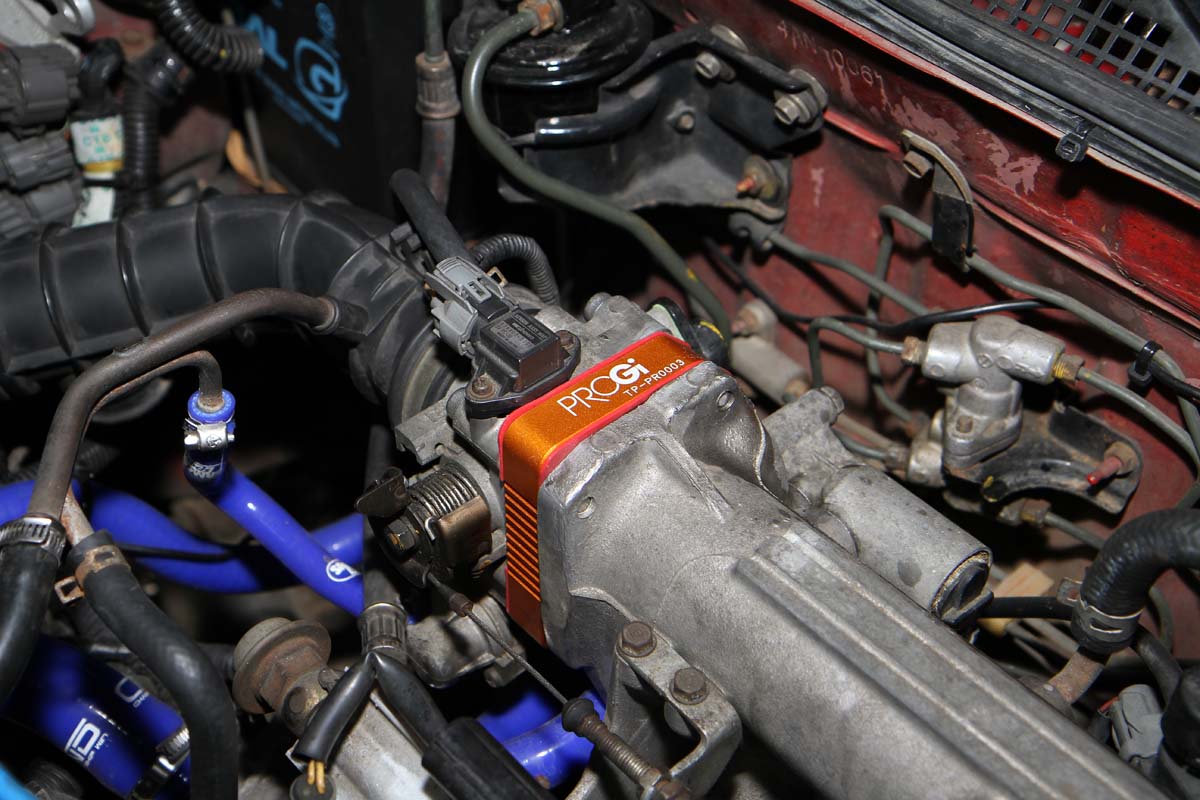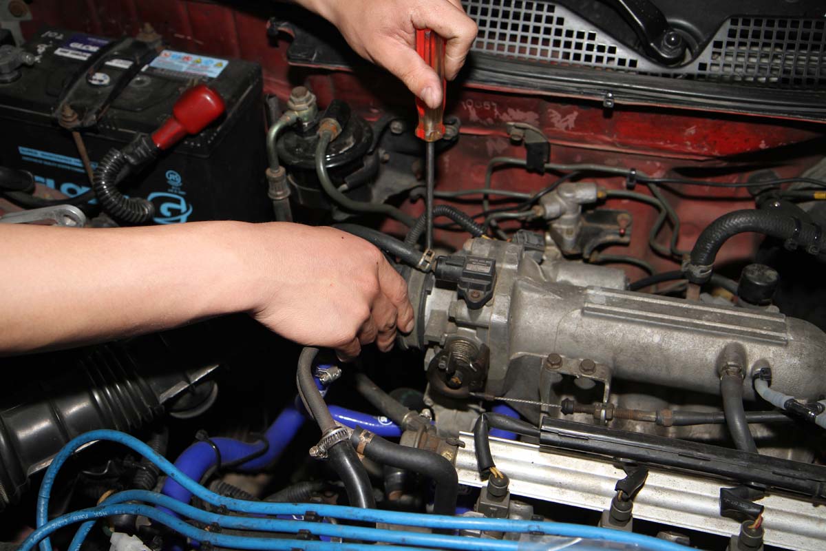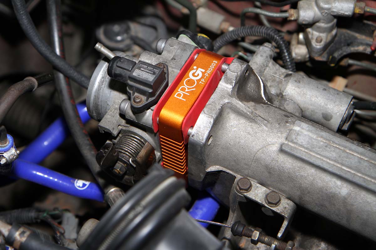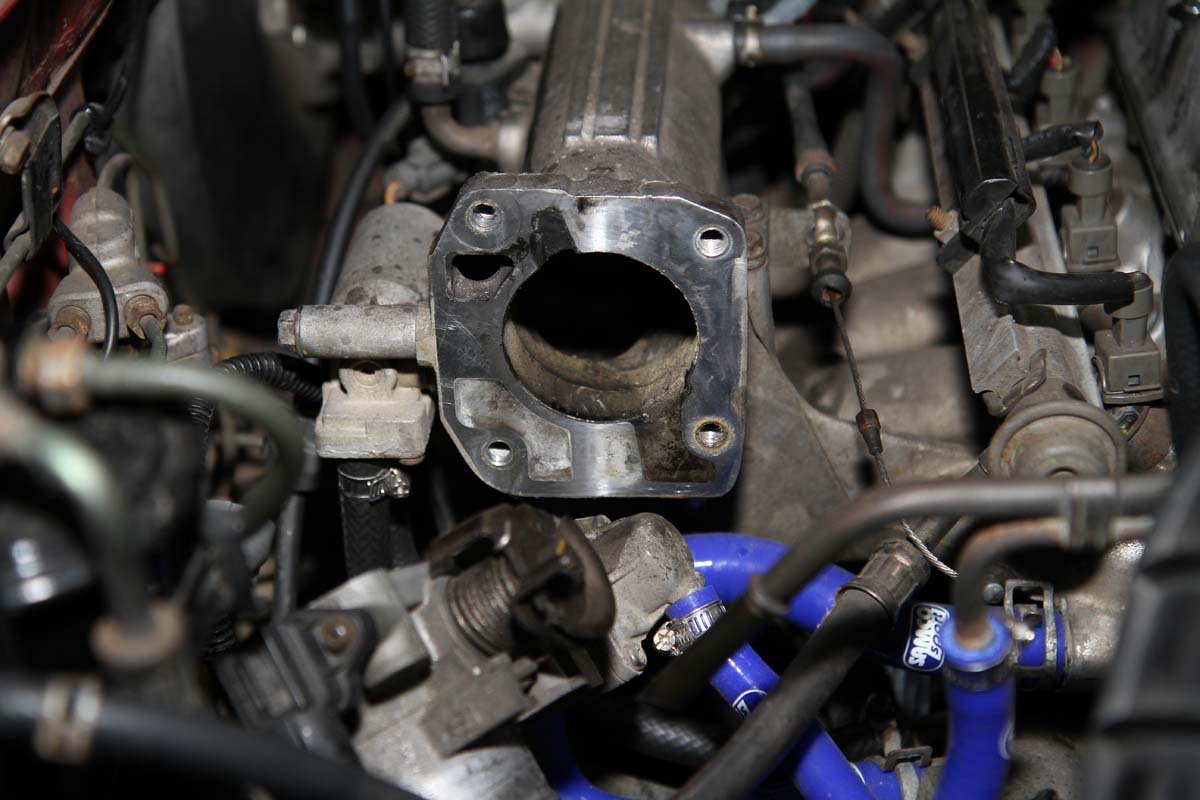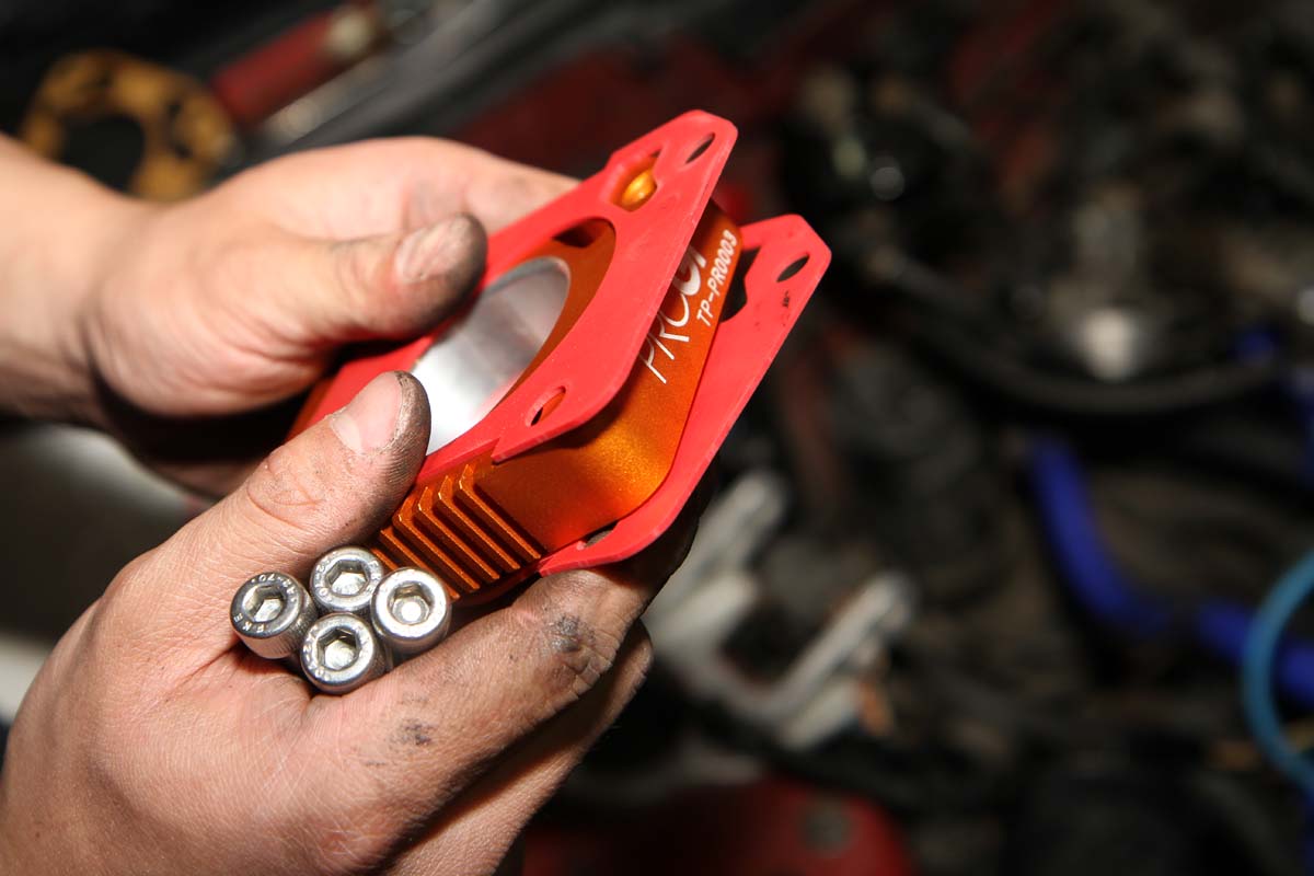 安裝此產品前需將節氣門整個拆下,因此難度有些高,需具備比較高階的DIY技術才能自行安裝,以示範的K6單凸沒VTEC引擎為例,拆卸節氣門前需先將安裝在節氣門上的進氣軟管、活性碳通氣管、兩顆Sensor的插頭與油門鋼索拆下,之後再把固定在節氣門上的四顆螺絲卸除,就可將節氣門與進氣歧管分離。此時、進氣歧管上還留下兩根螺絲在上頭,可將剛剛拆下的兩顆螺帽套入,轉到底後再用力轉底部第一顆螺帽,就可以把這兩根螺絲拆下。