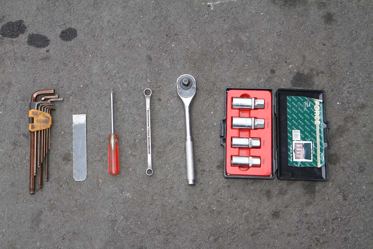 | 使用工具與材料:內六角扳手、刮刀片、十字起子、10/12號開口扳手或套筒扳手 |