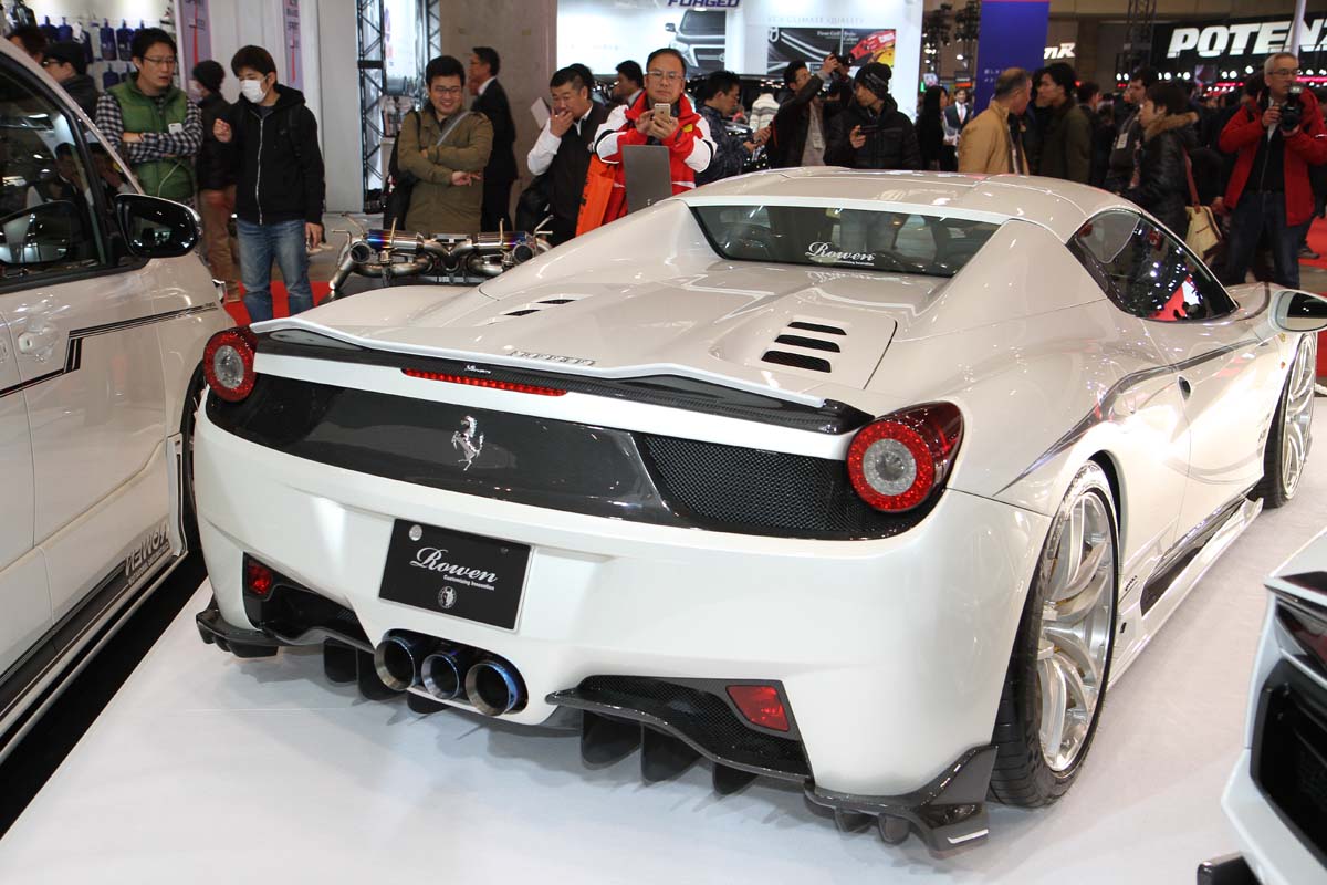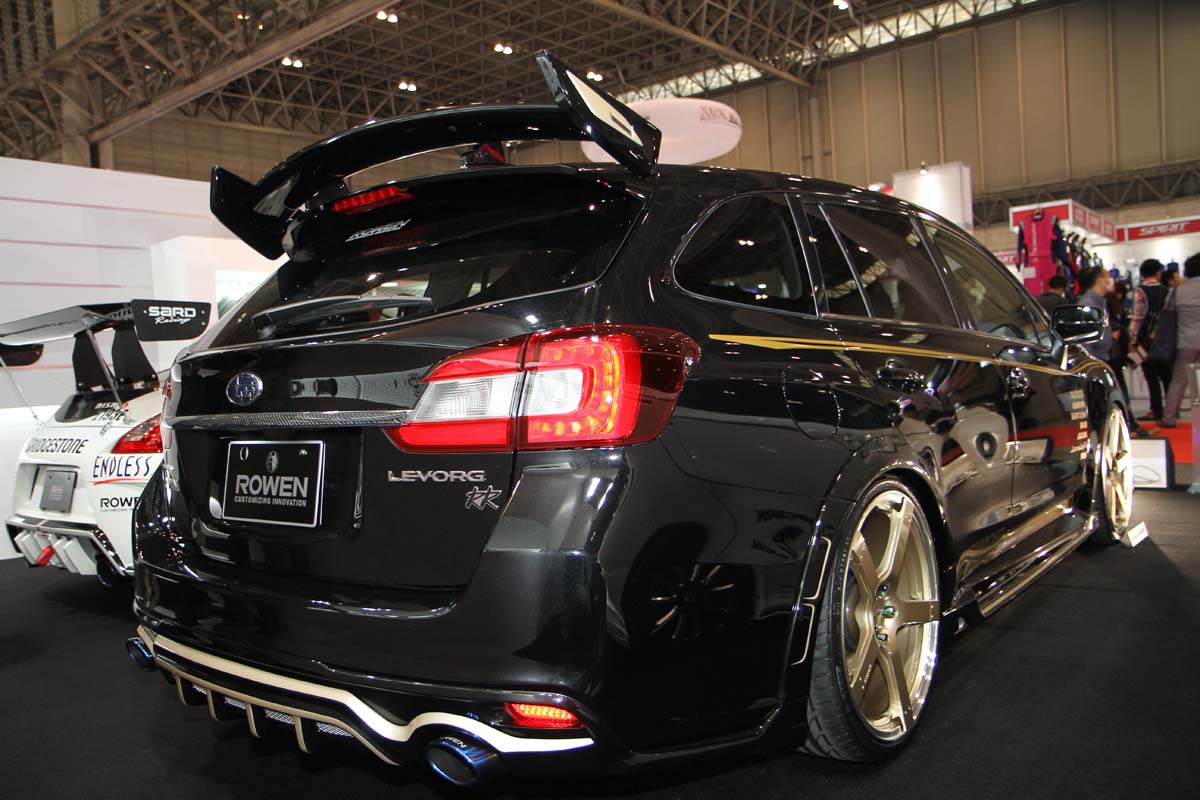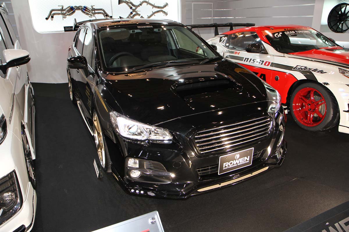 除了注重顏色展現外,車名也相當講究,其中最令人印象深刻的是擁有「帝」之名的Lamborghini Avantador LP-700,與「劍」之名的Ferrari 458 Spider,這兩部車都已裝上Rowen專為其推出的空力套件,從整體改裝幅度來看,兩組空力套件都是在不大幅修改原車鈑件下,透過畫龍點睛的部件,來更加凸顯兩車的性能氣息,其中的重點放在車尾翼與下擾流器上。另有一部Subaru Levorg RR展示車,透過加裝車頭水箱護罩、前下巴、左右側裙、輪拱貼片、後尾翼與後下擾流器等部件,使其展現出日系改裝車該有的外顯運動風格。
