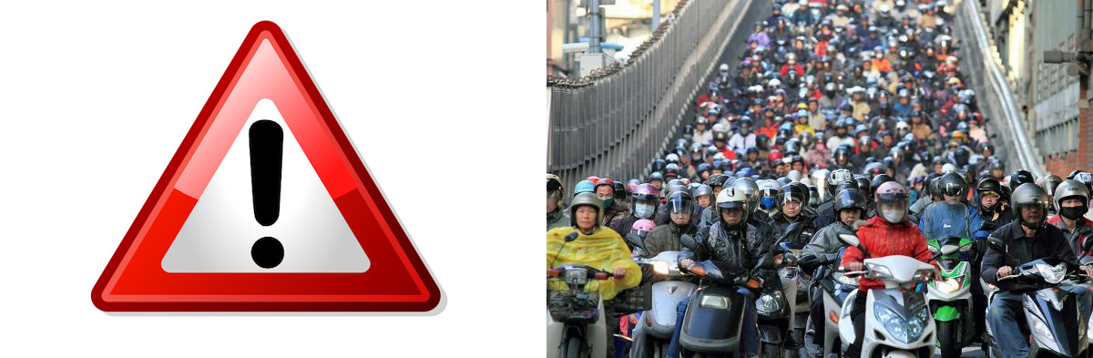根據警政署統計103年之A1類交通事故,103年發生1,770件,造成1,819人死亡。分析A1類事故之主要肇因,以「未注意車前狀況」發生379件最多(占21.4%),「未依規定讓車」發生258件次之(占14.57%),「酒後駕車」發生160件再次之(占9.03%) 。交通部統計,台灣在去年共有1445.3萬輛機車,幾乎1.6人就有1輛,每年約有1200人死於車禍。機車死亡率高居各種交通工具首位。102年機車駕乘死傷統計,死亡:1189人(61.7%)受傷:316599人(84.9%)。事故死亡年齡層,又以16歲到24歲最多。