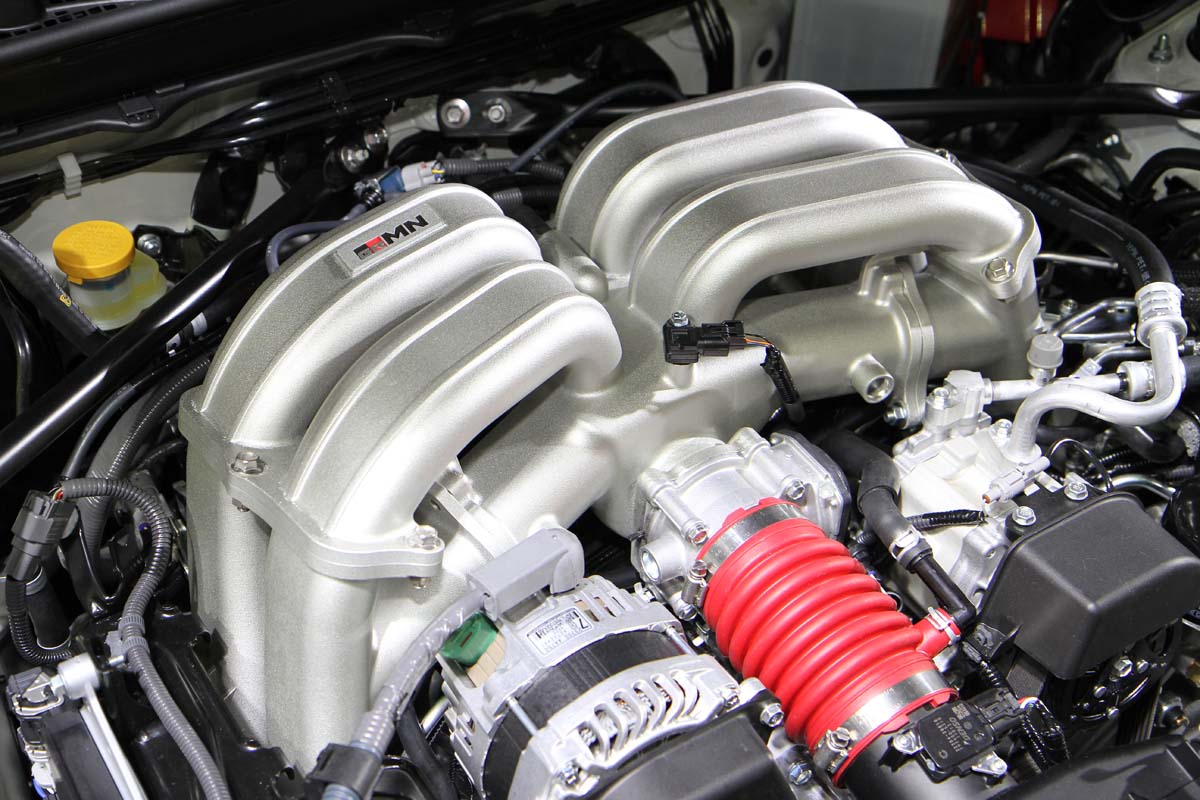看似簡單的空力套件已通過風洞測試,可有效增強高速行駛的下壓力,提供車輛更穩定的駕駛體驗。車體剛性部分也透過點焊與拉桿補強,使其擁有高於原廠1.8倍的車體剛性,並透過更換壓克力車窗、碳纖維引擎蓋/行李廂蓋/車頂,與拆除不必要的內裝配備/後座椅等,使車重減輕達50公斤。動力部分,強化引擎在4000~7000rpm之間的出力反應,並且換上造型獨特的進氣歧管,同時修改集氣箱位置,搭配等長排氣頭段等全套排氣管路後,引擎出力反應更加順暢。