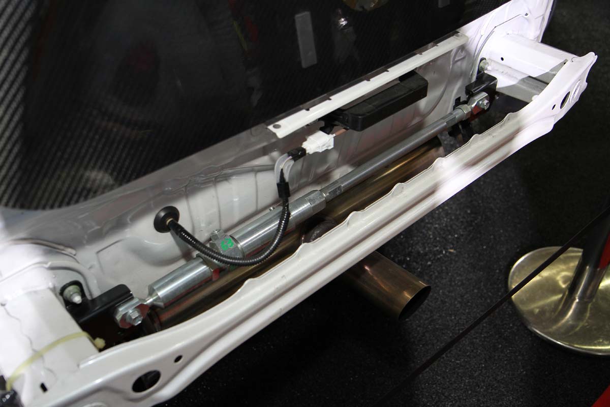 | 車體剛性部分也透過點焊與拉桿補強,使其擁有高於原廠1.8倍的車體剛性,並透過更換壓克力車窗、碳纖維引擎蓋/行李廂蓋/車頂,與拆除不必要的內裝配備/後座椅等,使車重減輕達50公斤。 |