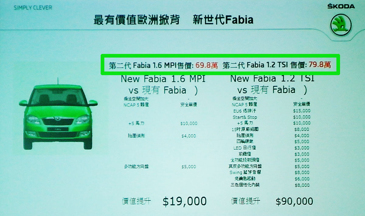 原廠威力果真強過總代理。SKODA台灣分公司今日舉辦全新大改款Fabia掀背車,不僅全新大改成本未反應在售價上,甚至提出6月底前購車優惠再減近7萬元,減幅高達一成的威力,叫人讚嘆「分公司果然不一樣」。