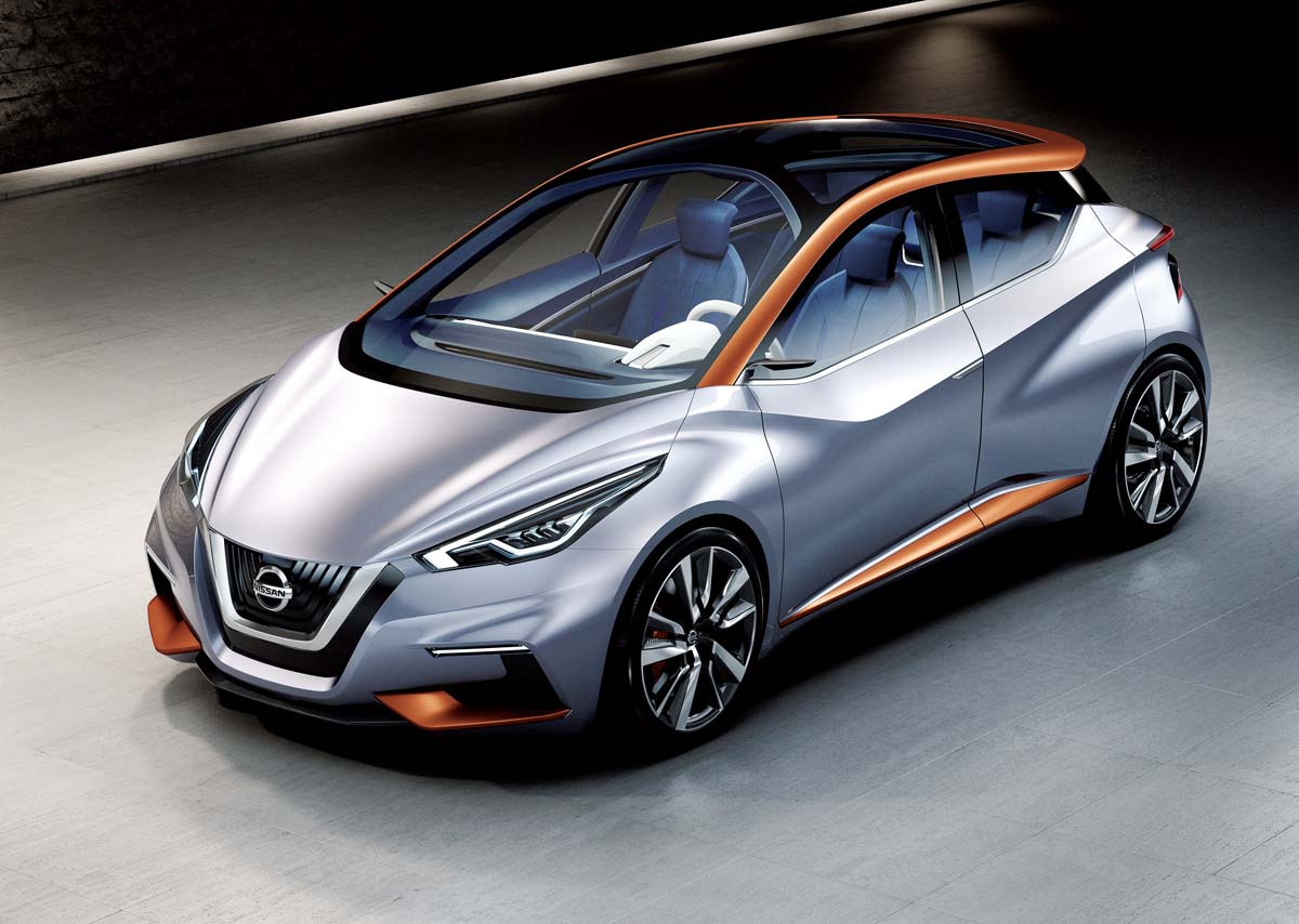 Nissan在日內瓦車展上發表的Sway概念車,原廠所提供的尺碼為長4010、寬1780、高1385mm,軸距2570mm,這部小型五門掀背車的格局讓人聯想到接下來Nissan March的改款趨勢,車身造型從車頭V字形水箱罩和鈑件曲線等皆具備Nissan家族現有的設計元素,全車更額外流露著動感、銳利且熱情的歐系都會小車時尚風貌,讓人期待不久的將來融入到量產車款所將呈現的綺麗風光。